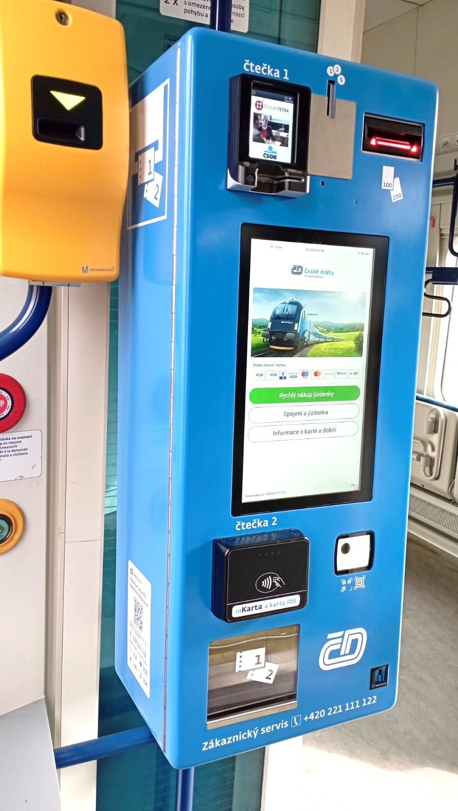 Ve vlacích Českých drah se cestující mohou setkat s novými prodejními terminály. Prvním krajem, kde byla nová generace zařízení MOPAJ (MObilní Prodejní Automat Jízdenek) instalována, je Zlínský kraj. Postupně budou následovat další regiony. Kromě zakoupení jízdenky terminál nabízí i další funkce, jako např. možnost nabít si elektronickou peněženku na In Kartě nebo kartě IDS.