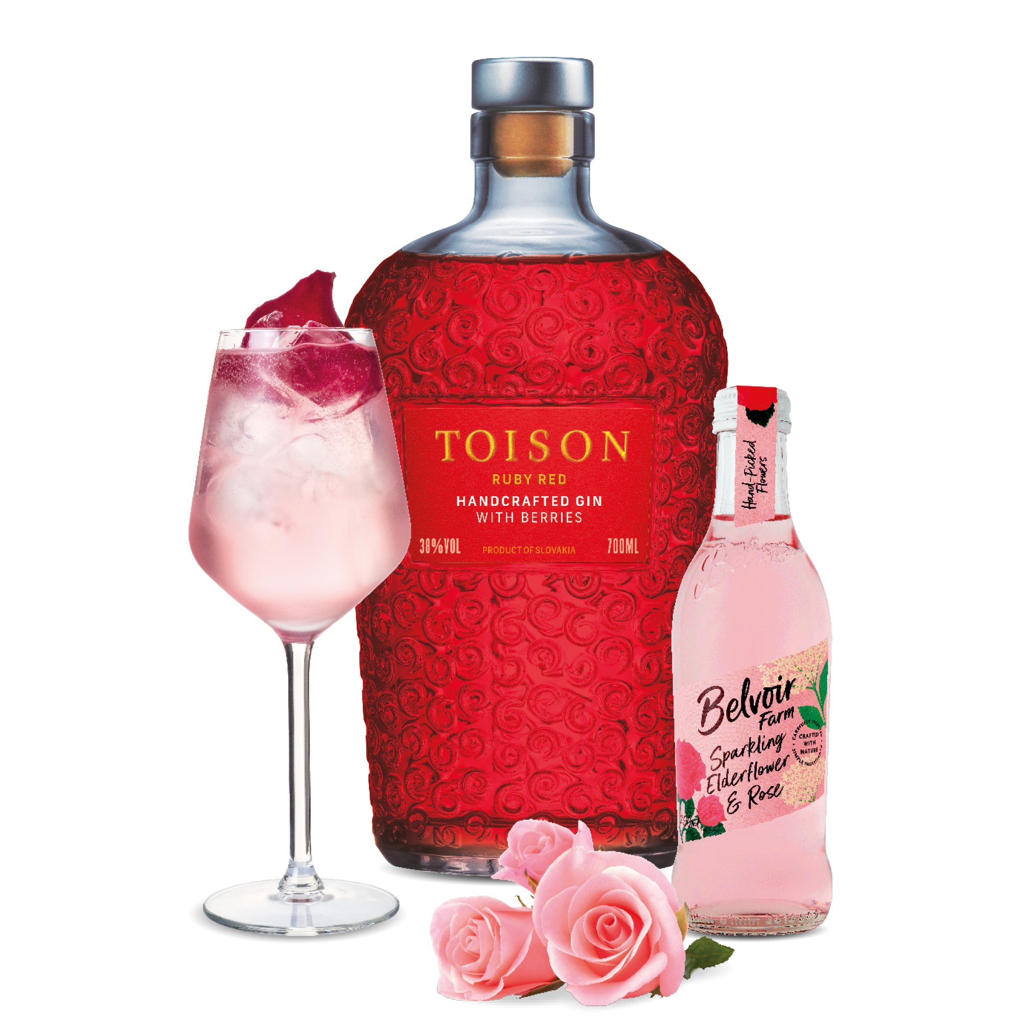 TOISON Ruby Red Gin je přírodní gin založený na originální receptuře ginu TOISON, který se vyznačuje autentickou chutí bez použití umělých aromat a barviv. Spojuje svěží tóny malin, jahod a černého bezu s jemnou vůní jahod a bylinným sametem. V chuti dominuje kombinace malin, bezu, jahod a klasického ginu, zatímco závěr nabízí osvěžující dozvuk bobulového ovoce a charakteristické chuti ginu TOISON.