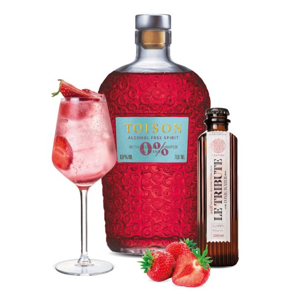 TOISON Berries Alcohol Free je nealkoholická verze růžového ginu TOISON. Ve vůni se prolínají sladké tóny jahod, jalovce a lučních květů, zatímco chuť nabízí harmonii bylinných tónů, malin a lučních květů. Závěr vás překvapí kombinací jalovcového a ovocného akcentu. Stejně jako originální neochucená verze nabízí i tento nealkoholický gin plnohodnotný chuťový zážitek bez alkoholu, což z něj činí ideálního společníka pro všechny, kteří si chtějí pochutnat na jedinečném nápoji a zároveň se z jakéhokoliv důvodu vyhýbají alkoholu.