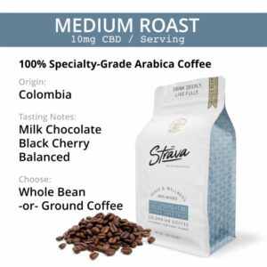 Užijte si kombinaci výběrové kávy s podtóny mléčné čokolády, višní a širokospektrálního výtažku blahodárných konopných látek včetně CBD, CBG a dalších kanabinoidů. Každá jedna porce kávy obsahuje 10 mg CBD a je tedy vhodná pro ty, kteří chtějí nejen eliminovat nežádoucí účinky kofeinu jako je bušení srdce či nervozita, ale také celkově podpořit svůj organismus. CBD a další konopné látky působí na endokanabinoidní systém uvnitř našeho těla a pomáhají tak udržovat optimální rovnováhu. CBD káva Sträva je proto skvělou volbou pro každého, kdo se chce během dne cítit uvolněně a klidně, dobře spát, mít lepší náladu, ale také třeba ulevit bolavým svalům nebo kloubům. Navíc opravdu skvěle chutná. Jedno balení zrnkové kávy vystačí na 25 šálků. Doporučená cena je 990 Kč.