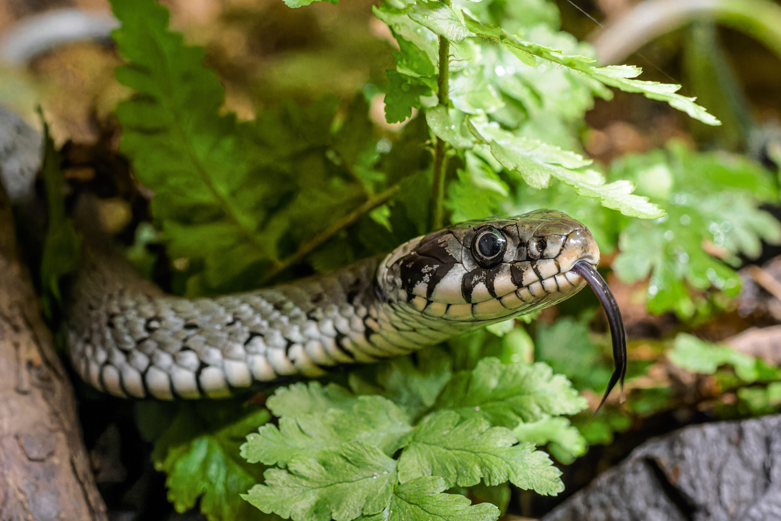 Foto 1: Užovka obojková je sice nejběžnější tuzemský had, avšak jen málokdo má při setkání s ní možnost si ji prohlédnout důkladně. V pavilonu Terárium v dolní části pražské zoo je nyní po zimní přestávce opět k vidění. Foto Petr Hamerník, Zoo Praha