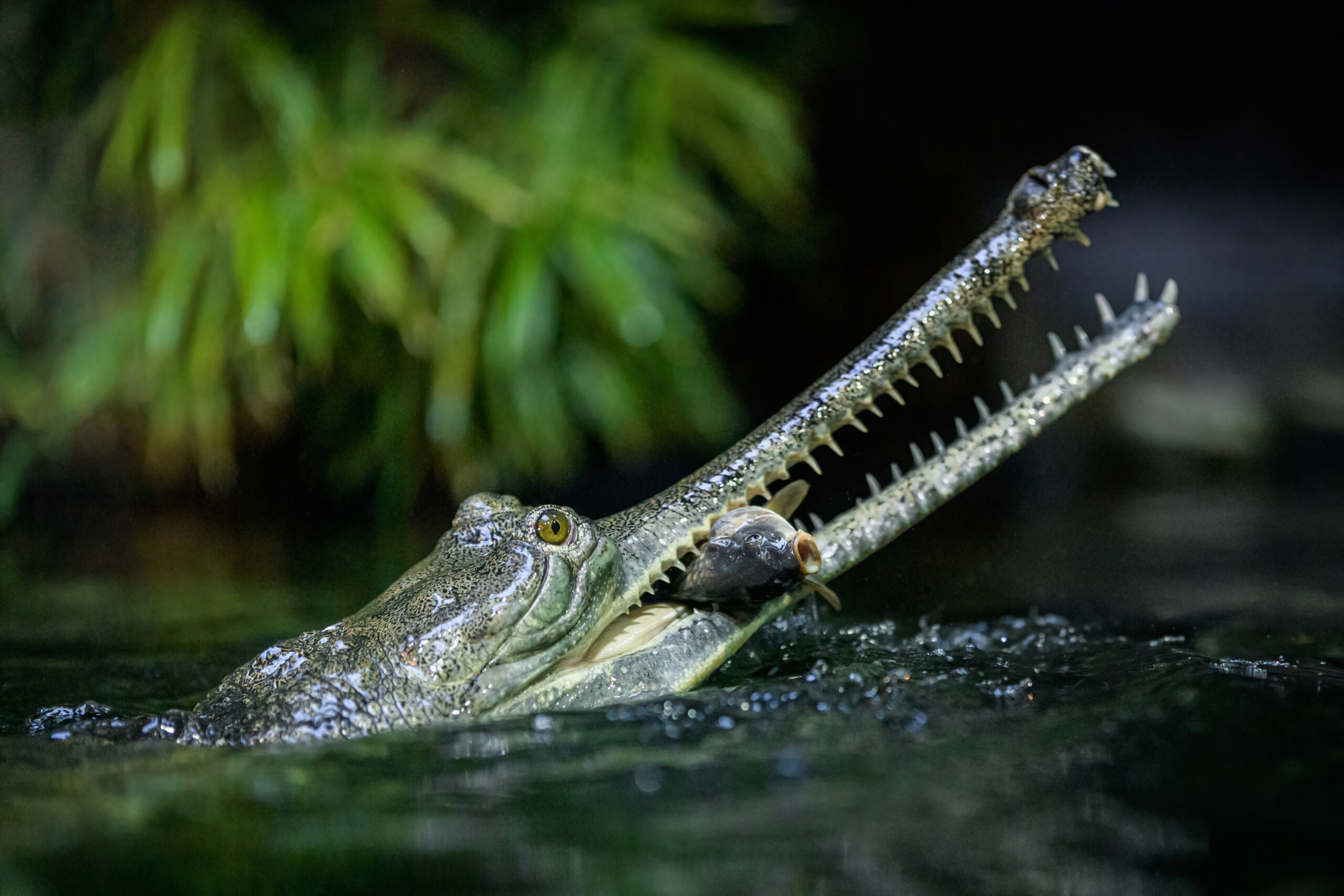 Foto 2: Pavilon Čambal obývá šestice více než třímetrových gaviálů indických. Tento kriticky ohrožený plaz se živí výhradně rybami. V Zoo Praha dostávají tito krokodýli vícero sladkovodních druhů ryb – nejraději mají české kapry (na snímku) a cejny, dále tolstolobce, tilápie či keříčkovce. Foto Petr Hamerník, Zoo Praha