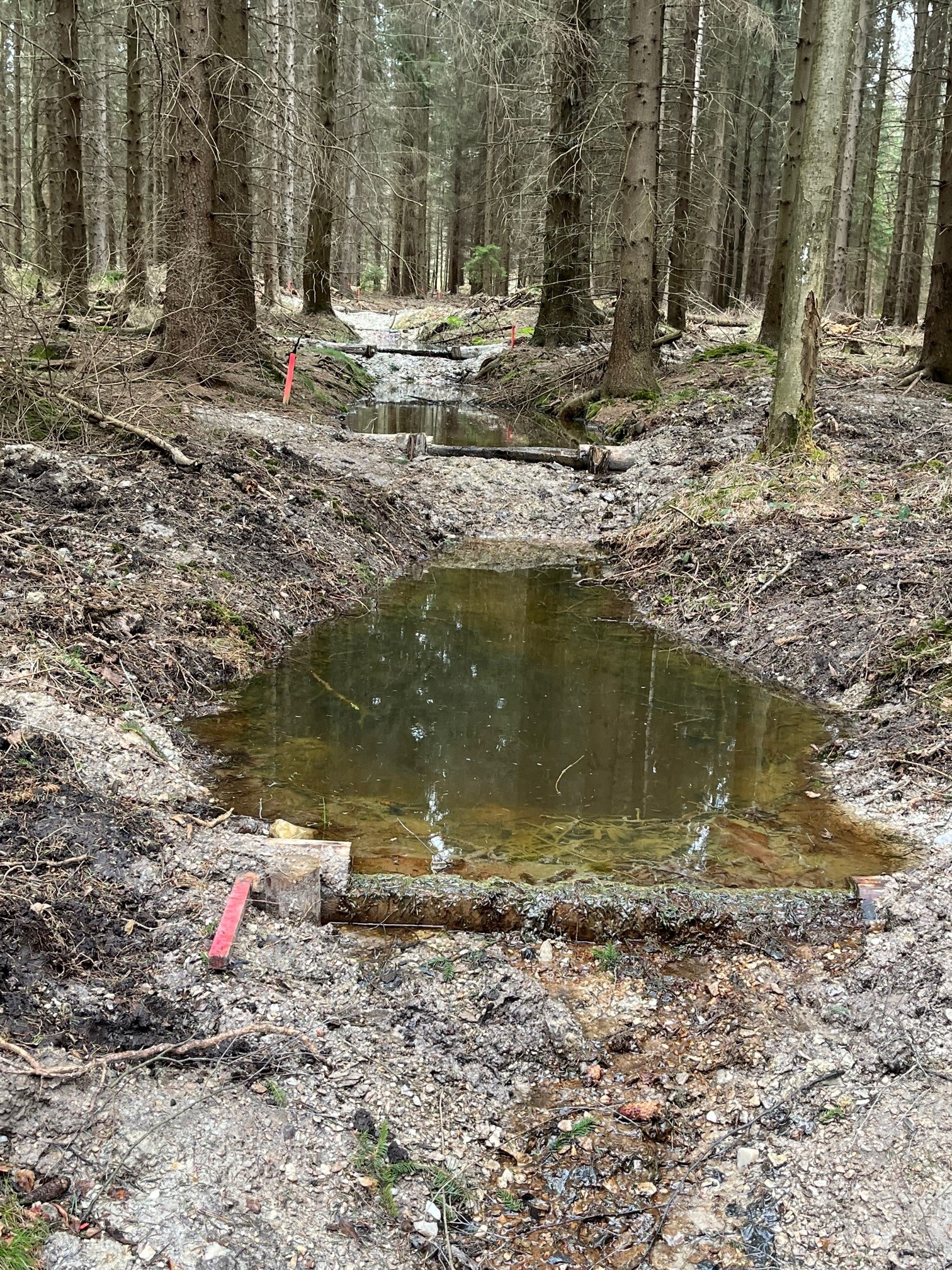 Tůně vyhloubené na asi 670 metrech čtverečních zlepšují vitalitu lesů u Nového Boru a poskytují biotop řadě živočišných druhů vázaných na vodu.