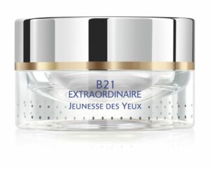 Kromě toho je skvělým pomocníkem pro restart pleti B21 Extraordinaire Oční krém pro restart mládí. Ten mimořádně účinně redukuje všechny nežádoucí projevy stárnutí očního okolí: vějířkovité vrásky kolem očí, výrazné linky, ochablost, mdlý vzhled, otoky a tmavé kruhy. Již po první aplikaci je kontura oka viditelně hladší, svěžejší a uvolněnější. Okolo očí je pleť 3–5krát tenčí než v jiných obličejových partiích. Navíc neobsahuje mazové žlázy, v důsledku čehož je mnohem náchylnější k dehydrataci a předčasnému stárnutí. Obsahuje také méně kolagenu a krev i lymfa v ní cirkulují daleko pomaleji. B21 Extraordinaire Oční krém resetuje díky komplexu Youth Reset Komplex® buňky, a tím zcela odstraňuje příčiny jejich špatného fungování. Dochází naopak k obnově jejich energie a podstatných funkcí, jako tomu bylo v mládí. Zvyšuje hustotu pleti, obnovuje její pevnost a elasticitu. Rozjasňuje pohled, ale i celkový výraz tváře, působí proti otokům a tmavým kruhům. Lze jej používat v jakémkoli věku a je vhodný pro každý typ pleti. Použití: Aplikujte ráno nebo večer na oblast očních kontur. Můžete ho nanést rovněž pod krém na oční kontury z dalších řad kosmetické značky Orlane, jako jsou Fermeté, Anti-Fatigue nebo Antirides Extreme.