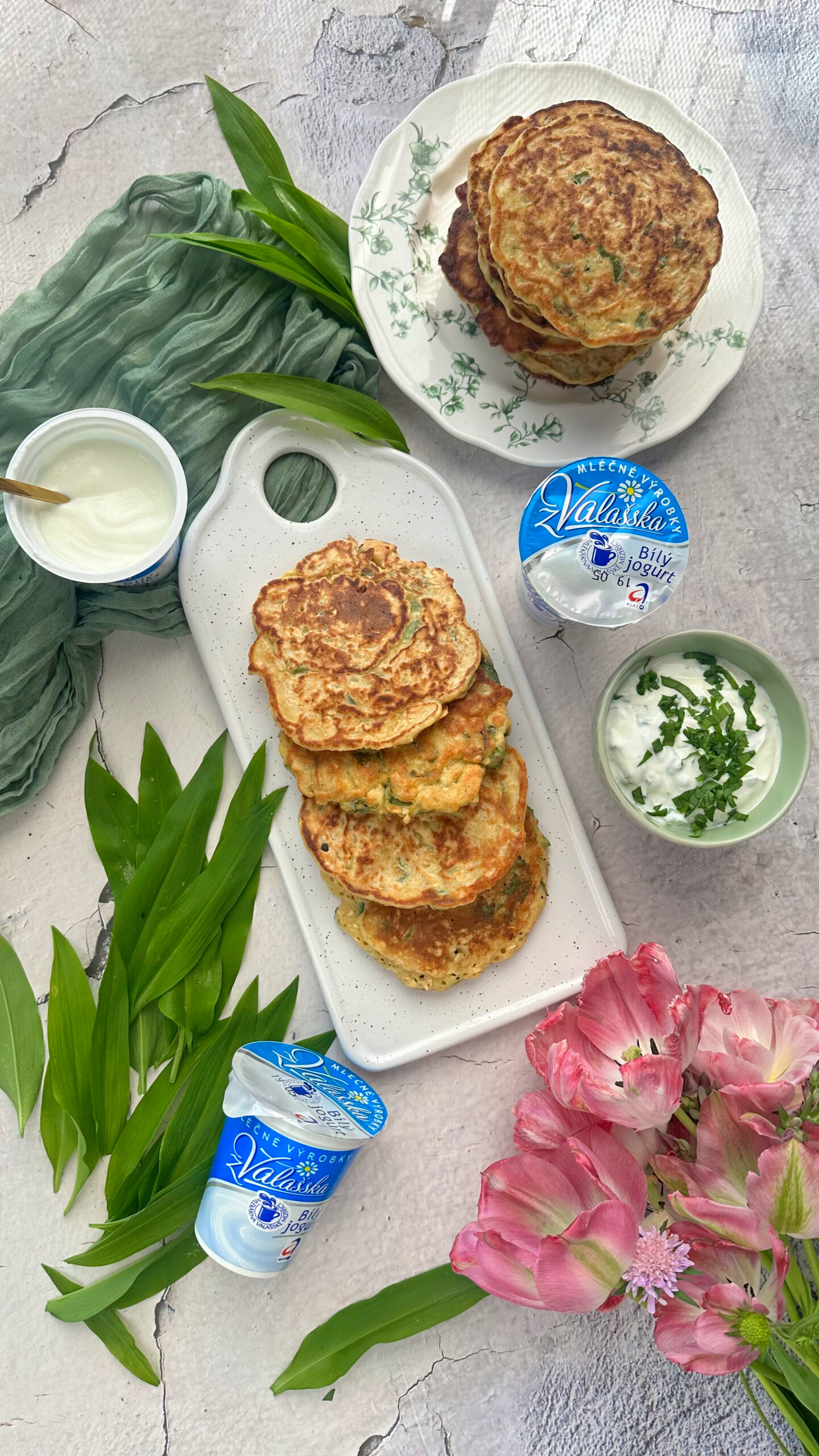 Ovesné placičky s medvědím česnekem a jogurtem z Valašska