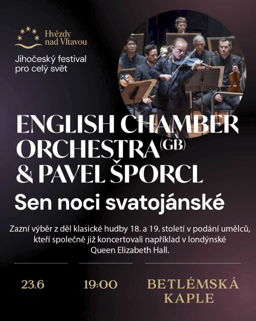 Mám obrovskou radost, že můžeme pražským posluchačům přivést jako festival Hvězdy nad Vltavou takové skvělé muzikanty, jako jsou členové English Chamber Orchestra. S tímto ansámblem jsem odehrál skvělý koncert loni v listopadu v londýnské Queen Elizabeth Hall, a proto jsem je pozval i k nám. Náš koncert v Betlémské kapli bude prvním pražským koncertem tohoto festivalu, prvním mimo Jihočeský kraj. Hrajeme krásný program – bude to neskutečný zážitek,“ zve všechny posluchače Pavel Šporcl.