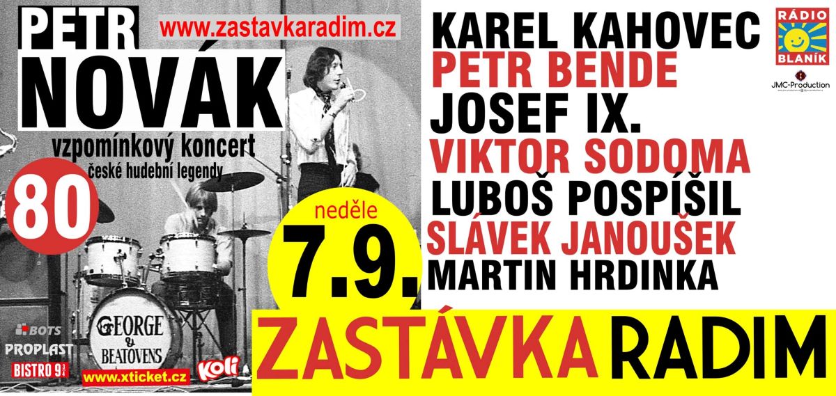 Legendární zpěvák a skladatel Petr Novák by letos oslavil 80. narozeniny. Na jeho nezapomenutelný odkaz zavzpomínají fanoušci i kolegové na velkém vzpomínkovém koncertu v neděli 7. září 2025 v kulturním areálu Zastávka v Radimi u Kolína.