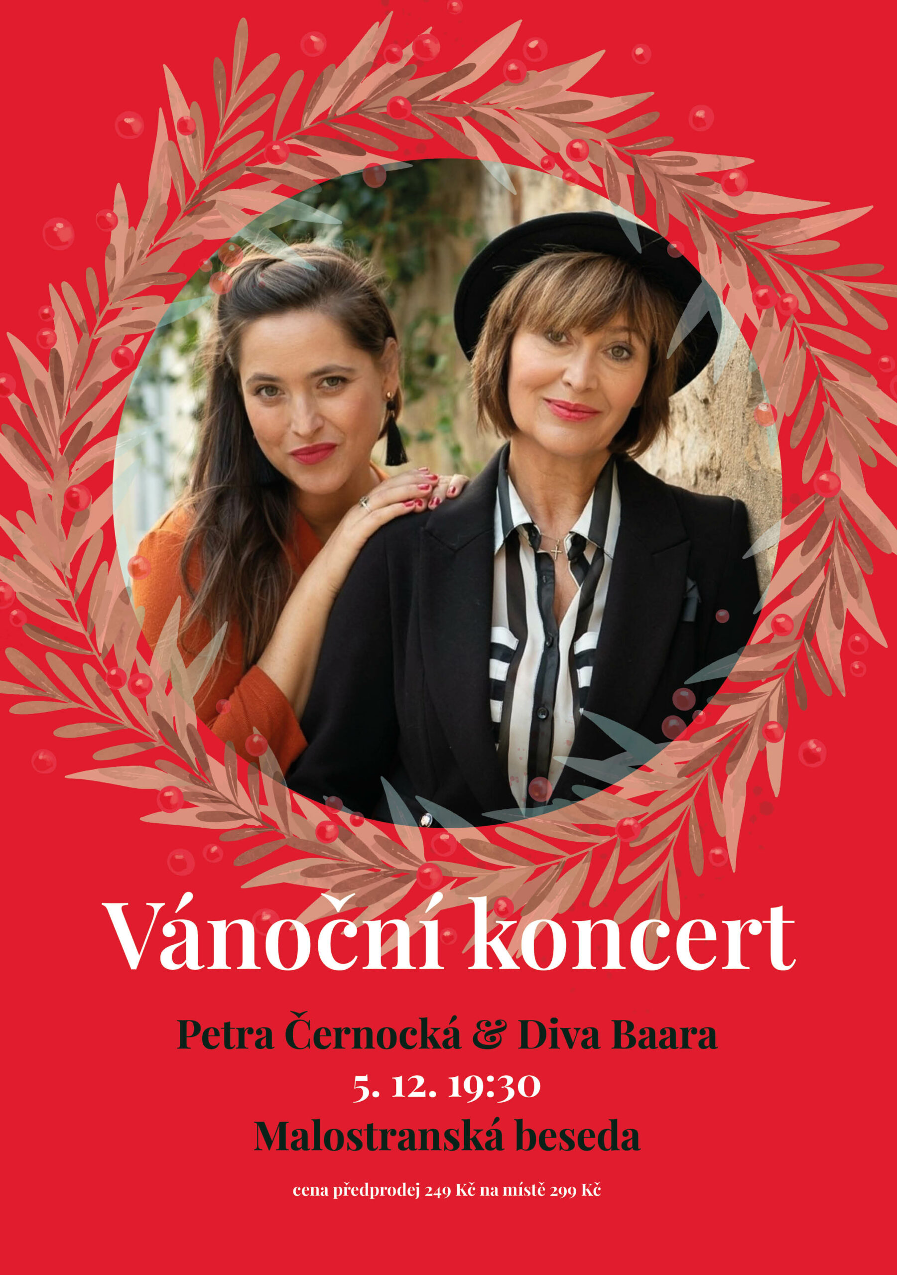 Vstupenky na koncert zde: https://www.ticketstream.cz/akce/vanocni-koncert-diva-baara-a-petra-cernocka-166963