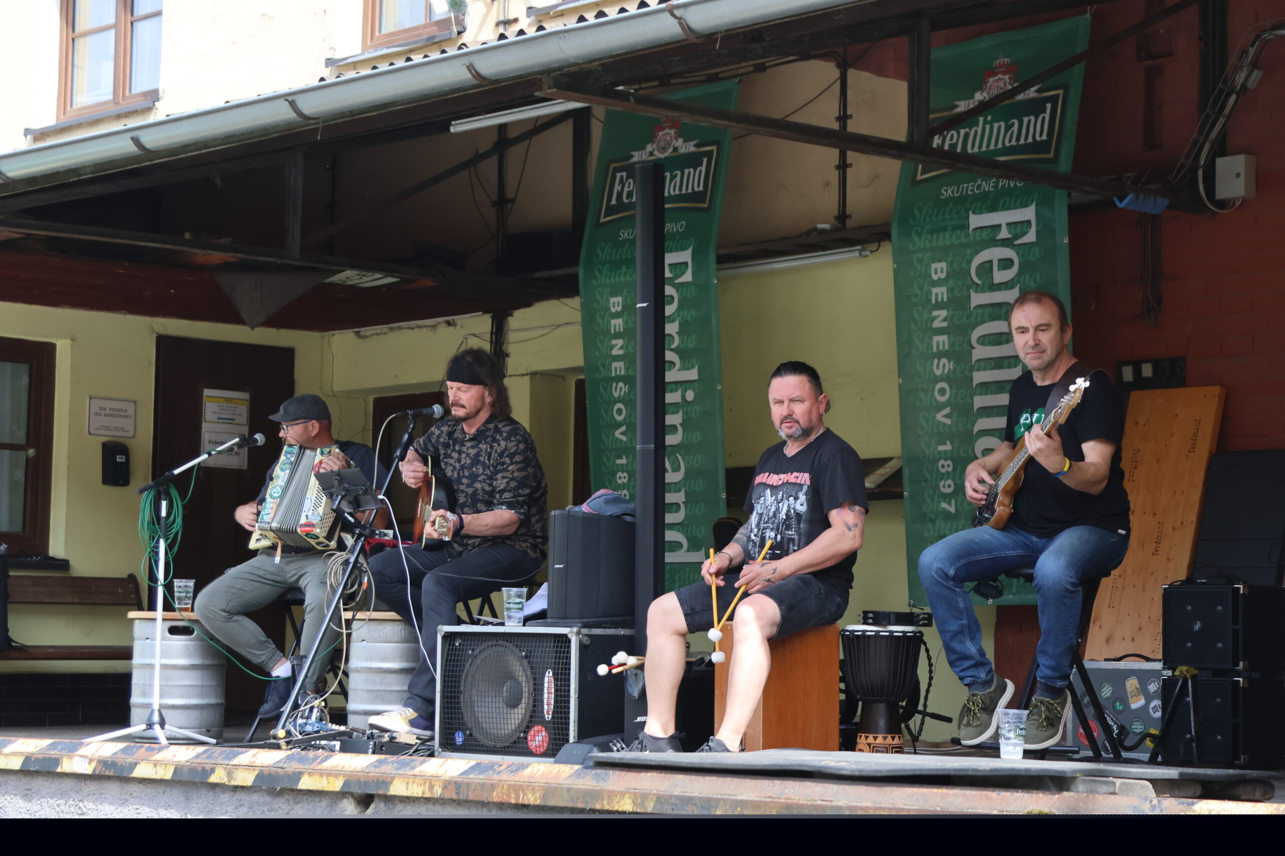 Po skončení prohlídky jsme mohli na nádvoří pivovaru ochutnat celý pivní sortiment pivovaru včetně speciálů, ale i nefiltrovaných a bezlepkových piv. Samozřejmě bylo i něco k zakousnutí. O hudební kulisu se postaralo akustické trio Lahvátor.