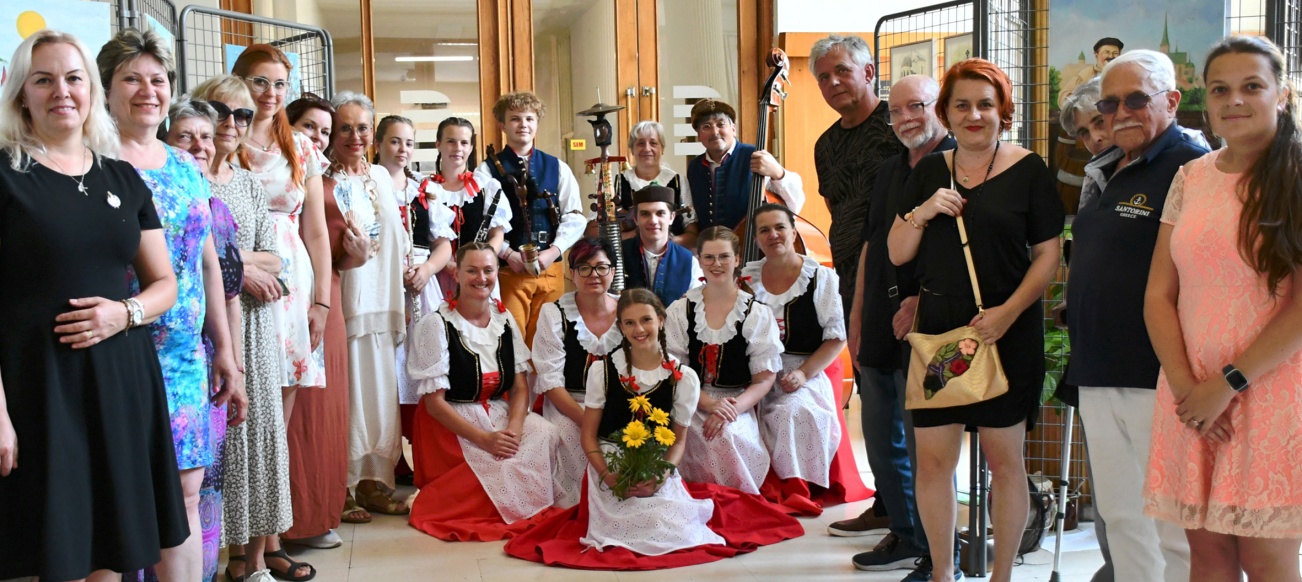 Prezentace obrazů různých technik s tématikou Plzně zpracovalo 17 vystavujících. Realizaci tohoto krásného projektu připravil nedávno zesnulý předseda Sdružení výtvarníků ČR pan Karel Hlavička (nar. 17. července 1939), a k uctění jeho památky je výstava věnována. Po úvodní řeči, kterou pronesl místopředseda SV ČR pan Josef Koutný (na snímku pátý zprava), v podání folklórního souboru Pšeničky z Nepomuka zazněla oblíbená lidová píseň „Plzeňská věž“, věnovaná vzpomínce na neúnavného a obětavého propagátora výtvarného umění pana Karla Hlavičky.