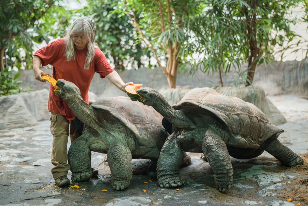 Foto 2: Velmi oblíbené jsou dýňové hody v Pavilonu velkých želv. Vrchní chovatelka Nataša Velenská bude i letos spolu se svými plazími svěřenci v centru tamního dění. Foto Petr Hamerník, Zoo Praha