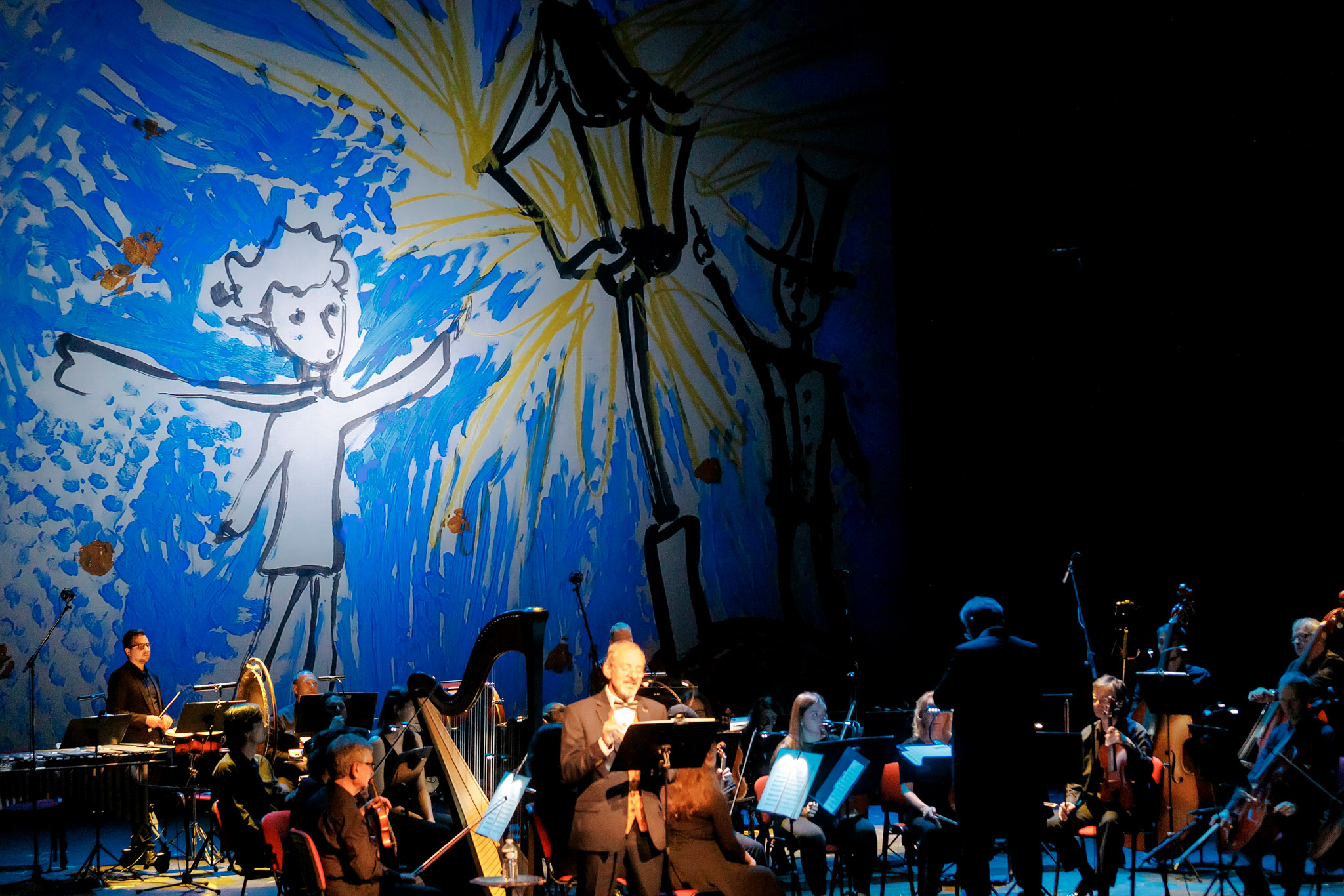 Výjimečnou atmosféru doplní grafický umělec German Grott, který během večera přímo na scéně vytvoří malby inspirované poetickými ilustracemi samotného Exupéryho. Diváci tak budou svědky okamžiků, kdy se obraz a hudba propojí s příběhem o přátelství, odpovědnosti a hledání podstaty života.