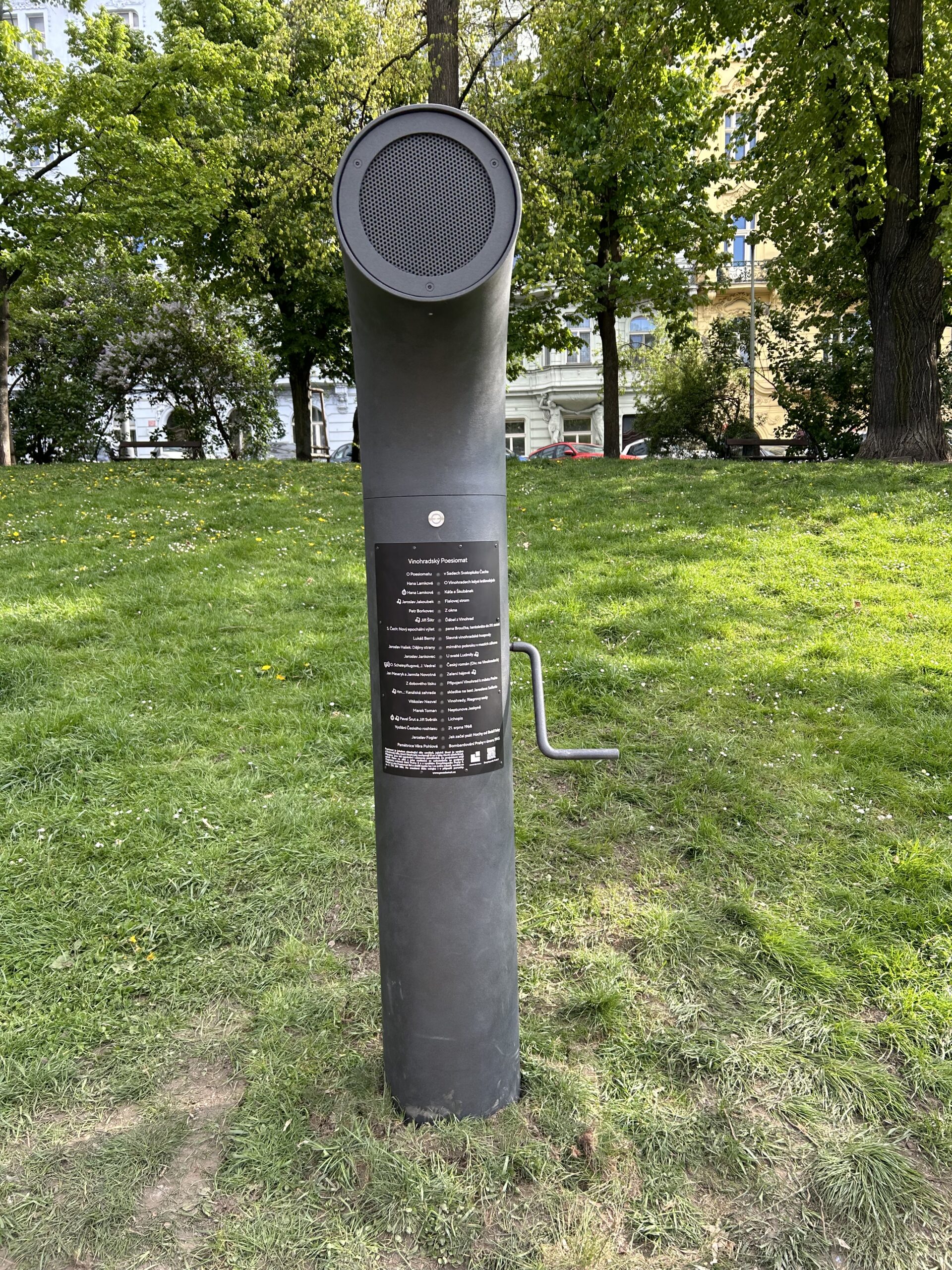 PRAHA (23. dubna 2024) Návštěvníci Sadů Svatopluka Čecha na Vinohradech mají od včerejšího dne novou atrakci – hrací skříňku, která po zatočení klikou seznamuje posluchače s tvorbou autorů, kteří žili a tvořili na Vinohradech. V repertoáru poesiomatu tak nechybí básničky, písničky a úryvky textů z děl Svatopluka Čecha, Karla Čapka, Jiřího Šlitra, Foglarovo vyprávění nebo ukázky z historického vysílání Českého rozhlasu.
