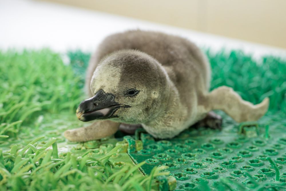 Pohlaví mláděte zatím není známo, chovatelé ho budou zjišťovat zhruba za dva měsíce. V té době by se malý tučňák mohl poprvé odvážit i do vody. Další více než rok bude mít šedé zbarvení typické pro mladé jedince, než přepeří do černobílého šatu dospělců.