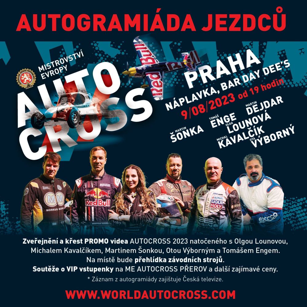 A pořadatelé připravili hned v příštím týdnu pro příznivce ještě další doprovodnou akci, autogramiádu jezdců a osobností. Zveme širokou veřejnost ve středu 9. srpna 2023 od 19.00 hodin do DayDee’s Baru na Smíchovské náplavce v Praze. K dispozici vám bude Martin Šonka, Tomáš Enge, Olga Lounová, Michal Kavalčík, Martin Dejdar a Ota Výborný. Na místě bude také přehlídka závodních strojů a proběhne křest promo videa Autocross 2023.