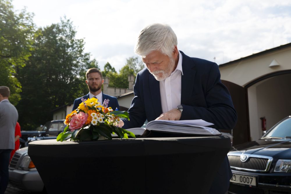 Prezident Petr Pavel při zápisu do pamětní knihy NTM.
