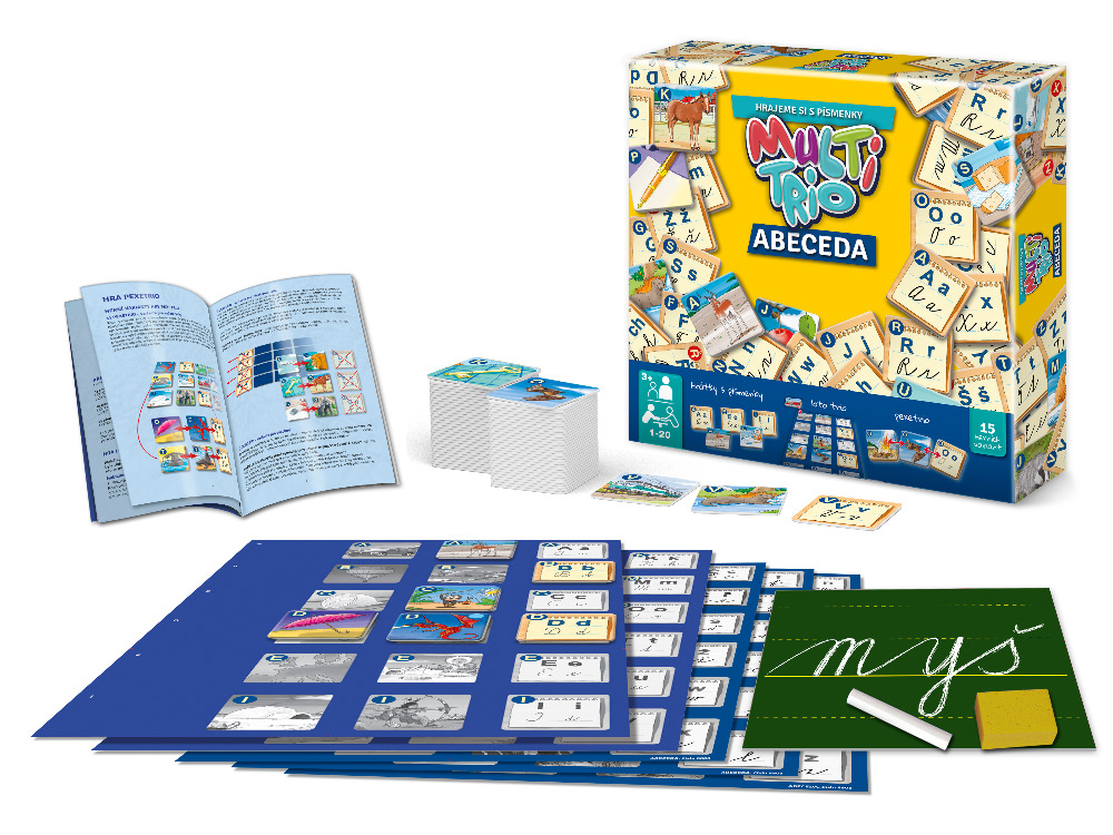 Jedná se o soubor her určený k poznávání písmen a vytváření slov. Obsahuje několik herních variant – například: Řekni slovo, Hledej slova, Vytvoř slova, Abeceda, Hádej slova, Šibenice, Na smolaře, Malá křížovka, Přesmyčky, Slova končí na…, Sestav větu a je doplněn o psací tabulku s křídou. Soubor také slouží k procvičování českého jazyka – homonym, synonym, antonym. Je tedy vhodný pro děti různého věku. Cena výrobku je 599 Kč.
