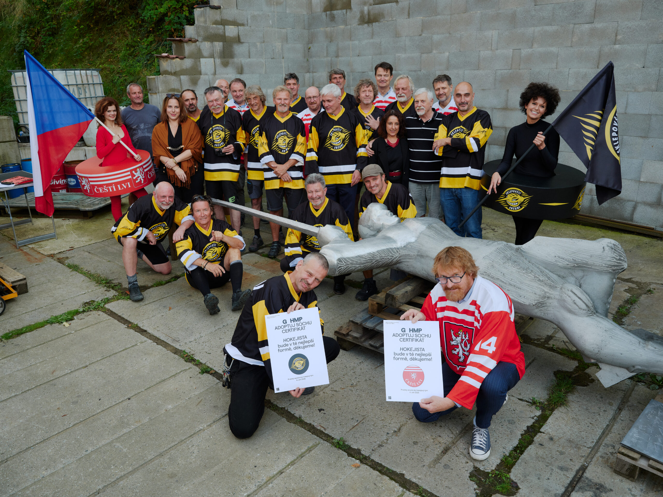 Projekt Adoptuj sochu: Slavní hokejisté z klubů Sklepovští sršáni a Čeští lvi přispěli na restaurování Hokejisty