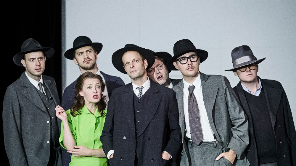 V hlavní roli. J. Roberta Oppenheimera exceluje Jan Teplý, který má velký prostor ve druhém dějství. V prvním dějství se seznamujeme s ostatními méně známými vědci, kteří se podíleli na Projektu Manhattan. Výborný je Michal Lurie představitel maďarského vědce Leó Szilárda, stejně tak Šimon Holiš v roli Paula Erdöse nebo Martin Němec jako představitel bankéře a filantropa Alexandra Sachse. Teodor Dlugosz představuje Vannevara Bushe a Jaroslav Blažek Jenö Wignera.