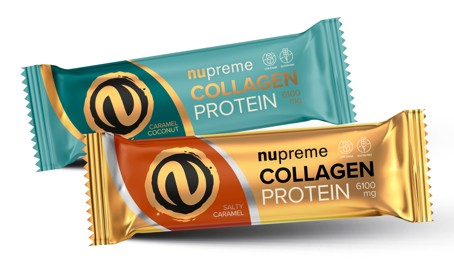 A v jaké formě kolagenní peptidy zvolit? V té s co nejčistším složením, na které si pochutnáte. Vybírat můžete z proteinových tyčinek v příchuti kokos a karamel nebo slaný karamel. Můžete si dopřát pralinky s hořkou čokoládou a kolagenními peptidy Beauty Bons. Anebo můžete zkombinovat snacky s kolagenem rovnou i s Collagen Premium Peptides od Nupreme, z něhož za pár vteřin vytvoříte kolagenový nápoj, který si můžete ochutit podle svého gusta.