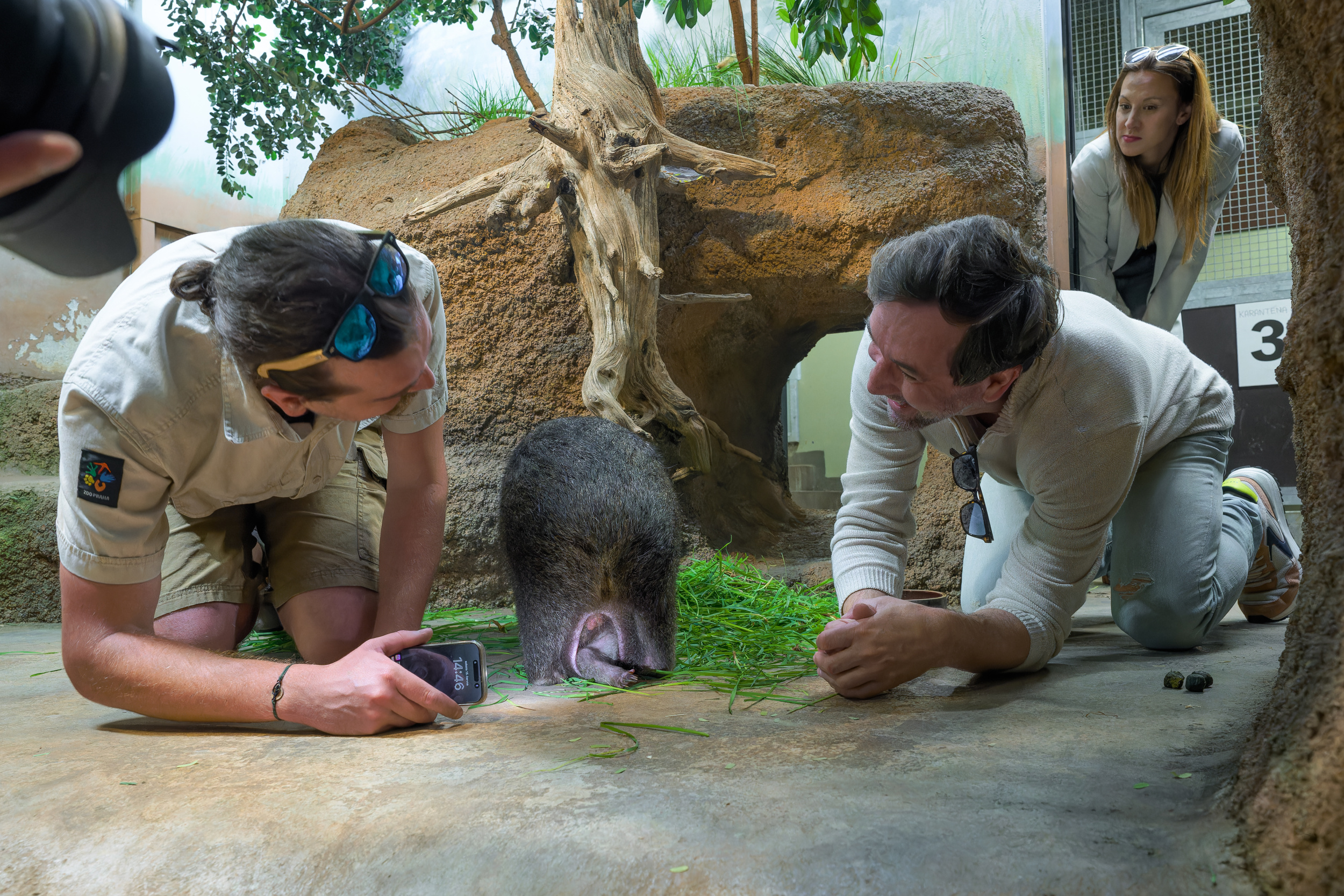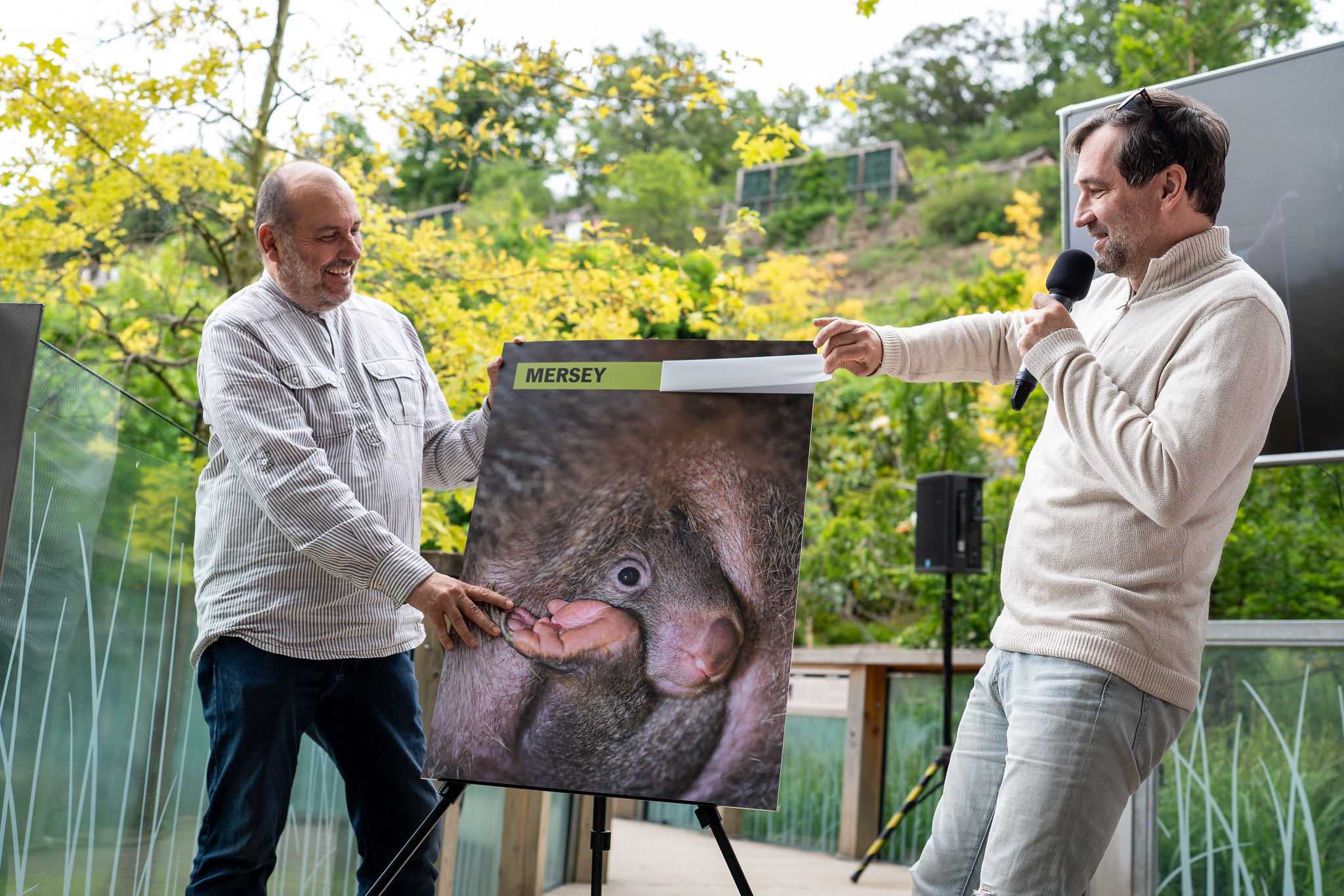 Foto 1: Pohlaví i jméno prvního českého mláděte vombata společně odhalili ředitel Zoo Praha Miroslav Bobek a patron pražských vombatů, herec Ondřej Sokol. Foto Oliver Le Que, Zoo Praha