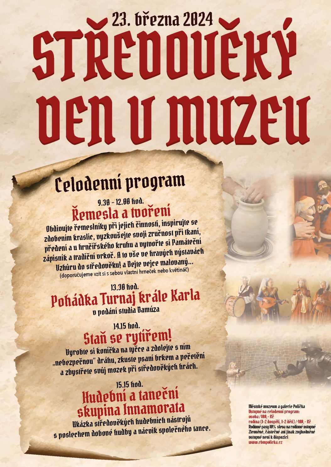 V sobotu 23. března 2024 čeká na návštěvníky poličského muzea bohatý dopolední i odpolední program a výstavy Vzhůru do středověku! a Dejte vejce malovaný… oživené starými řemesly a tradicemi.