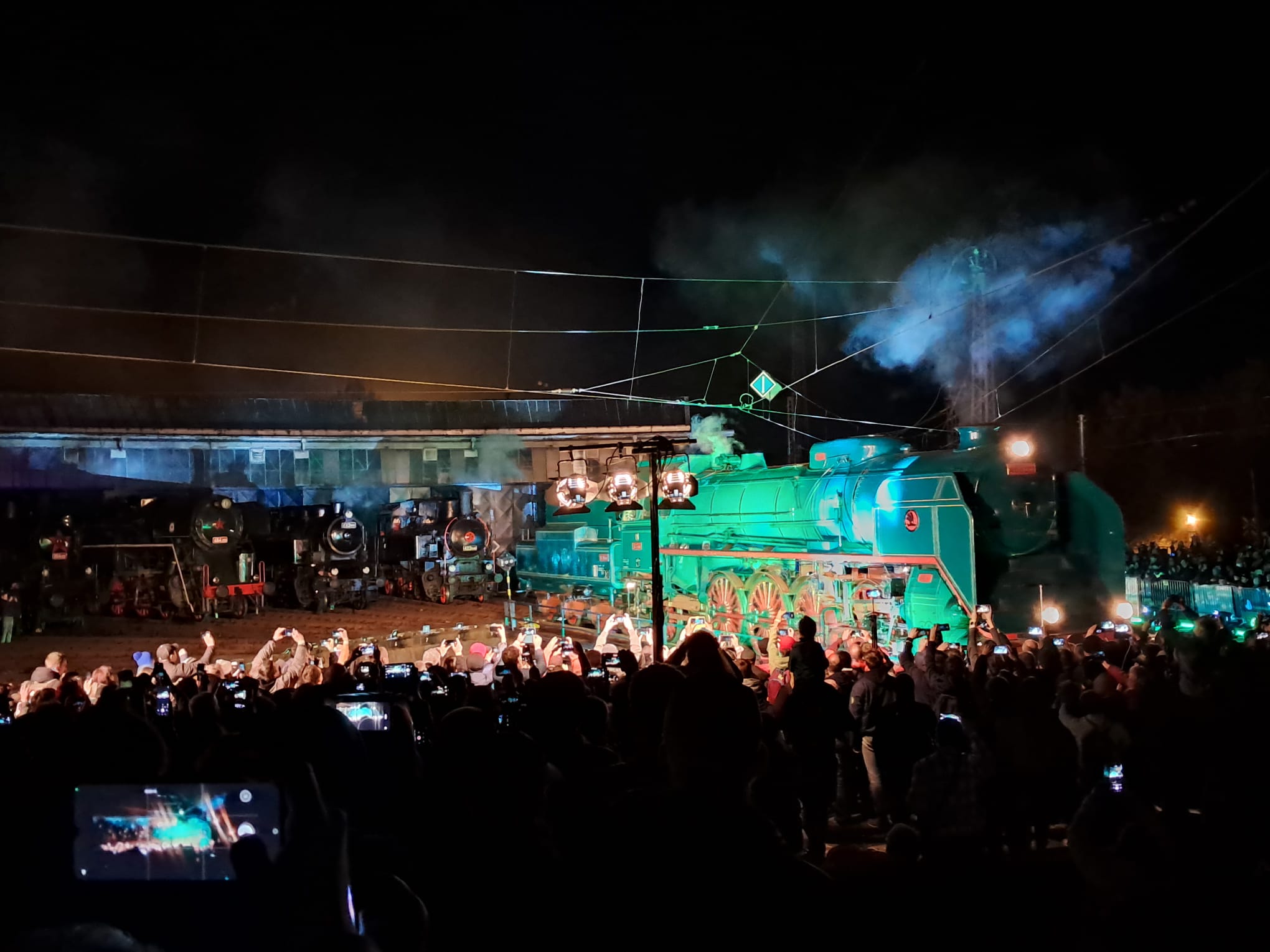 Vrcholem akce pak byla sobotní noční show. Na točně depa v České Třebové se ve scénickém osvětlení a se živým hudebním doprovodem, o který se postaral soubor Banda di feste, představila více než desítka historických lokomotiv a vozů.