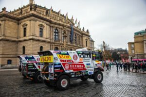 REPORT Slavnostní představení pilotů i válečných barev Buggyry ve velkém stylu: fanfáry České filharmonie pod majestátným panoramatem Pražského hradu 37 dní před startem soutěže se aktuálně největší český dakarský tým Tatra Buggyra ZM Racing představil svým fanouškům. Jako místo prezentace si vybral prostor před tradicemi opředenou budovou Rudolfina a na Tatry z výšky shlížela silueta Pražského hradu. Závodníkům pro štěstí zazněly fanfáry členů dechové sekce České filharmonie. Vůbec poprvé se světu ukázala „kamufláž“, v níž na start Dakaru nastoupí obě posádky Tatry Phoenix v kategorii kamionů i replika legendární Tatry Puma v klání Dakar Classic. Vedle členů posádek všech tří kamionů v samém srdci Prahy nechyběla ani dvojčata Aliyyah a Yasmeen Kolocovy, která v pouhých 18 letech čeká debut na Rallye Dakar ve speciálech Can-Am DV21 třídy T3.