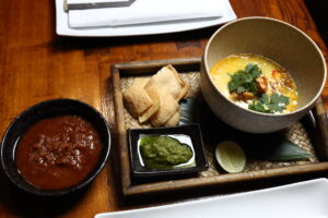confit chicken, coriander, fried shallot, coconut milk