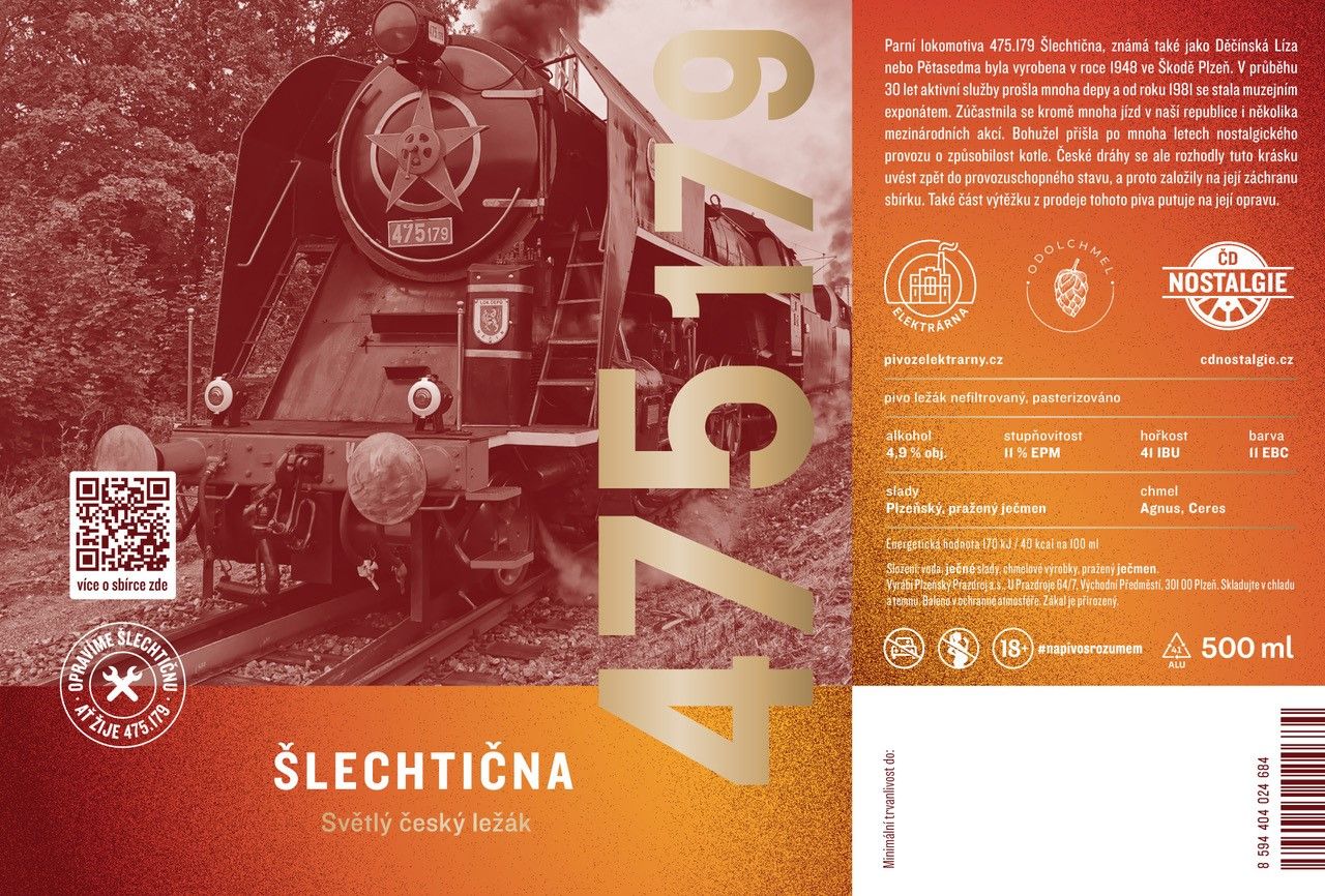 Parní lokomotiva 475.179 Šlechtična patří mezi jedny z nejcennějších artefaktů naší železniční historie a ukázku poválečného strojírenského umu. Po dlouhých letech provozu potřebuje lokomotiva generální opravu,“ říká Marek Plochý, ředitel Centra historických vozidel Českých drah, a dodává: „O jízdy parních vlaků je trvale velký zájem napříč všemi generacemi. Náklady na opravy se nicméně neustále zvyšují. Proto hledáme další zdroje pro financování oprav. Jedním z nich je již třetím rokem výroba pivního speciálu. Ve spolupráci s Plzeňským Prazdrojem a jeho experimentálním pivovarem uvádíme již třetím rokem do prodeje speciální edici piva, jehož prodej pomáhá získávat finanční prostředky na opravu konkrétní lokomotivy. V letošním roce je to právě Šlechtična.“