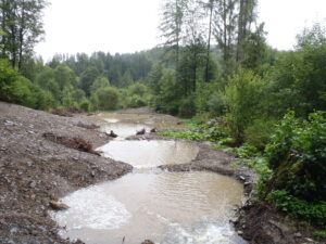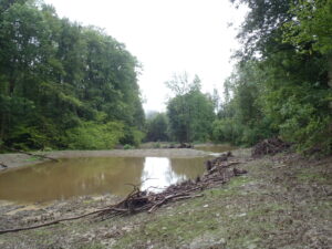 1 700 metrů krychlových vody. „Zvolili jsme přírodě blízký způsob úpravy břehů, což znamená, že půda není uhlazená, ale naopak zvrásněná s různými členitými prvky, jako jsou pařezy, kmeny a větve. Ty poskytují úkryt drobným živočichům, stejně jako několik nových okolních zimovišť a broukovišť, tedy hald větví spojených se zeminou,“ říká Pavel Němčanský, vedoucí správy toků pro oblast povodí Odry z Lesů ČR.