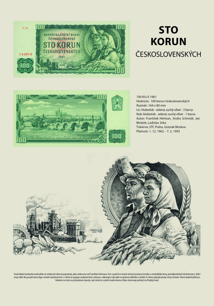 Výstava, která vznikla ve spolupráci se Státní tiskárnou cenin, představí, jak se proměňoval design platidel v závislosti na politické a kulturní situaci od doby vzniku samostatného Československa až po 90. léta 20. století. Skrze dobovou symboliku, často představovanou agrárními, folklorními či florálními výjevy, odkazují bankovky nejen na politické a kulturní události, které formovaly naši zemi, ale i na význam a roli zemědělství v tehdejší době.