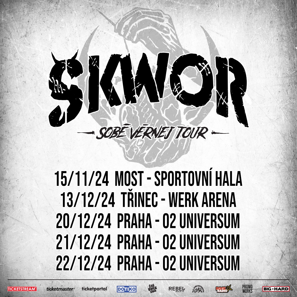 Po vyprodaném loňském „dvojáku“ v pražském O2 universu, kde kapela Škwor oslavila 25 let na scéně a pokřtila nové album Sobě věrnej, vyjela letos na jaře stále populárnější čtveřice na své dosud největší turné. Platinovou deskou Supraphonu ověnčenou albovou novinku i svou ostrou rockovou show dala ochutnat svým příznivcům v sedmi českých a moravských městech na většinou vyprodaných koncertech. Na podzim se fanoušci mohou těšit na pokračování 15. listopadu ve Sportovní hale Most a 13. prosince v třinecké WERK Areně. Celé turné pak vyvrcholí 20., 21. a 22. prosince, kdy se kapela opět vrátí do haly O2 universum. Jedinečnou atmosféru uplynulých koncertů přibližuje (a na podzimní tour láká) právě zveřejněný live klip ke skladbě Pravda bolí. Podívejte se zde: https://youtu.be/cIFFhwGTBNU