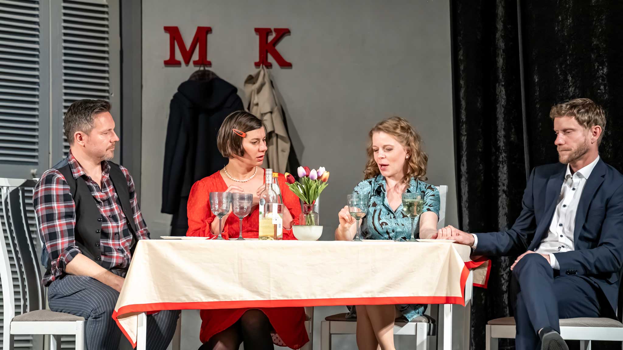 Režie se ujal Patrik Ulrich, který dal inscenaci svižné tempo a moderní nádech. Diváci se mohou těšit na nečekané zvraty, chytré dialogy a postavy, které jako by vystoupily ze života. Zvláštní pozornost si zaslouží postava extravagantního herce, kterého hraje Michal Slaný v alternaci s Miroslavem Novotným – na večeři s přáteli dorazí v rytířském kostýmu a plně se vžívá do role rytíře Tvrdohlava z Lesoluk.