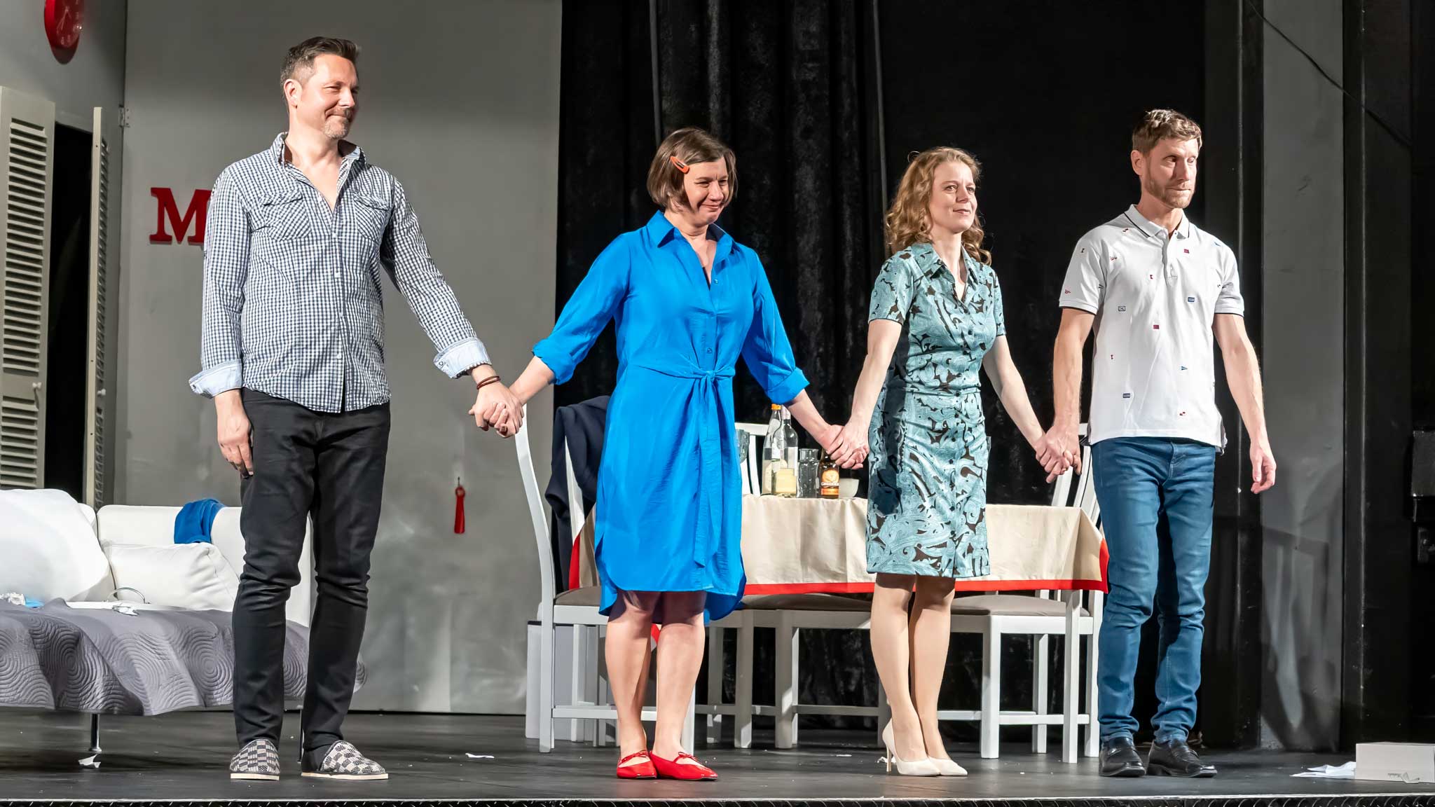 V hlavních rolích excelují Jaromír Nosek, známý například z filmu „Román pro muže“, a Monika Zoubková, kterou diváci znají ze seriálu „Ordinace v růžové zahradě“. Společně s Kristýnou Kudrnáčovou a Michalem Slaným v alternaci s Miroslavem Novotným tvoří dvě partnerské dvojice, které se rozhodnou udělat netradiční krok – vymění si partnery. Vtipná a místy velmi trefná komedie zkoumá dynamiku partnerských vztahů, rozdílné představy o životě a lásce i to, co se stane, když se do „výměnné reality show“ zapletou emoce.