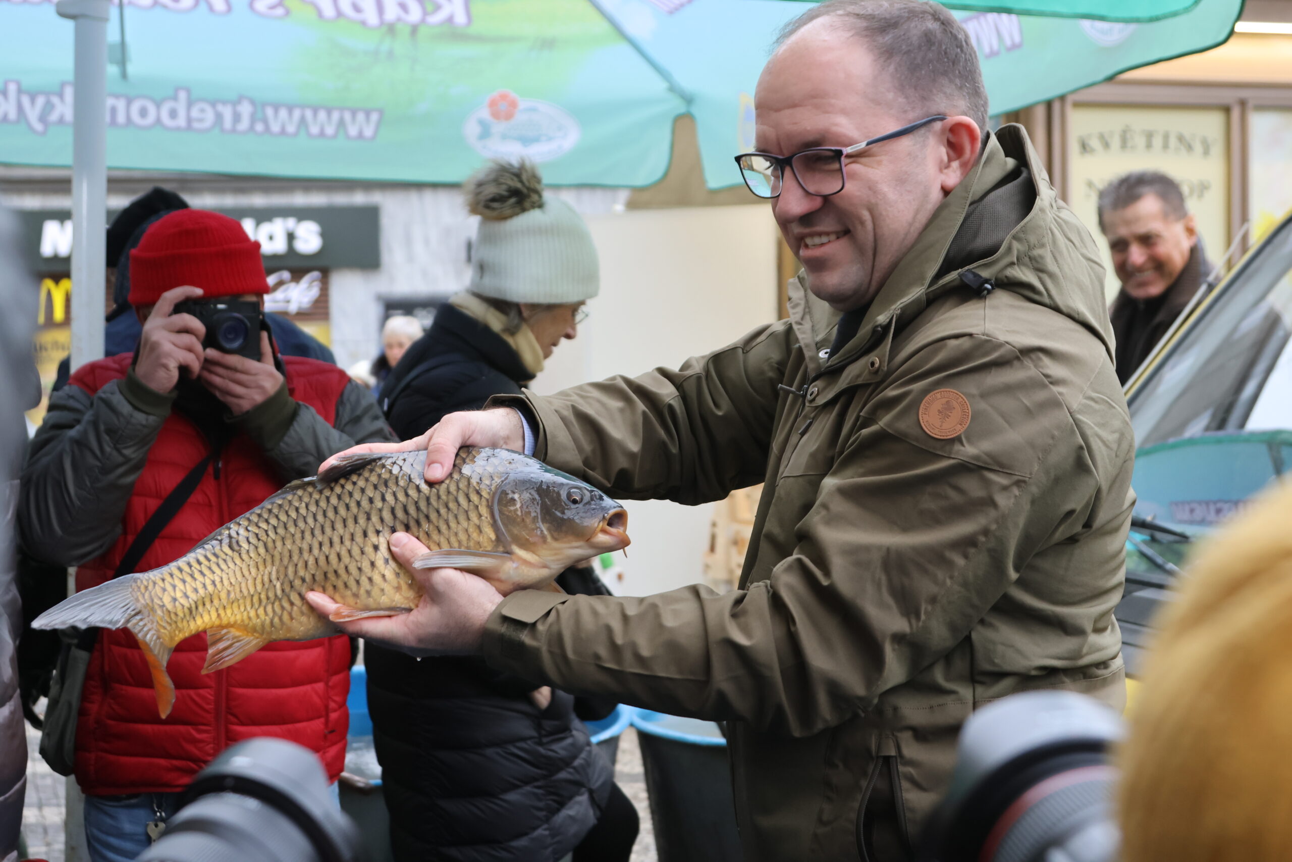 Praha-Tylovo náměstí-Ministr zemědělství Marek Výborný a Státní veterinární správa kontroluje prodejce vánočních kaprů