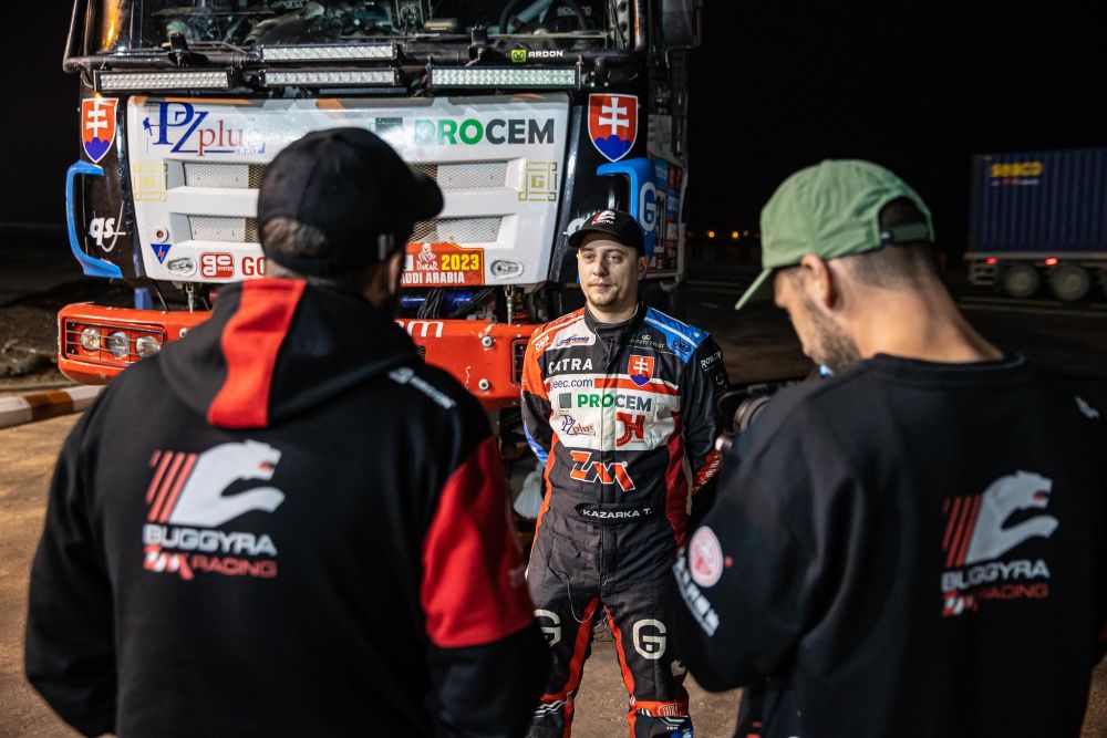 V osmé etapě Rally Dakar posádky Bugygra ZM Racing úspěšně dokončily druhou část náročné maratonské etapy. Na trati z provizorního bivaku v Davadmí zpátky do Rijádu si spolu zazávodili Martin Šoltys v Tatře a Aliyyah Koloc za volantem speciálu Buggyra Can-Am DV 21, oba si vzájemný souboj pořádně užili. Zítra čeká všechny účastníky Dakaru zasloužený den volna a po něm druhá polovina soutěže. Po té první se Jaroslav Valtr drží po dnešním 11. místě na celkové šesté pozici. Už jen místo za ním je dnes osmý Martin Šoltys. Róbert Kasák byl po 346 km rychlostní zkoušky devatenáctý, mezi všemi piloty kamionů mu náleží 20. místo. Josef Macháček je v kategorii T3 – Lehké prototypy těsně za průběžnou nejlepší desítkou, po etapovém 20. místě je na jedenácté pozici. Aliyyah Koloc dnes skončila o dvě pozice lépe než dakarský doyen, průběžně se drží jako pětatřicátá. V hodnocení Dakar Classic je Radovan Kazarka ve své kategorii nadále třetí, když mu dnes patřila čtvrtá příčka. Martin Šoltys a Aliyyah Koloc spolu bojovali na kamenitých úsecích i v dunách. „V dunách nám Aliyyah ujela, tam je šikovná a jede krásně. Na tvrdých pistách jede kamion rychleji, tak jsme zase ujeli my jí,“ popsal pilot Tatry 815 malý týmový souboj. „Jelo se nám výborně. Jen jsme byli trošku omezeni tím, že nám včera upadly ty tlumiče, takže nám to pořád netlumí. Ale etapa byla krásná, krásné duny. Tím jak jsme včera ztratili, předjížděli jsme dneska hodně Can-Amů. Na volný den se těším. Hlavně se těším, že dáme dohromady auto. Je vidět, že Dakar je těžký a týden v terénu je na autě znát. Tatra už potřebuje péči a lásku,“ dodal Martin Šoltys v cíli erzety. Jaroslav Valtr musel celý měřený úsek absolvovat neplánovaně jen s pěti válci. I tak dokázal jet často na plný plyn. „Po včerejšku jsem chtěl jet na bednu, tahle trať vyloženě Tatře vyhovuje. Jenže po sto metrech na startu to přestalo jet. Hned jsem věděl, že jedeme na pět válců. Po technických pasážích přišly duny, kde jsme museli jet opatrně a obezřetně. Najeli jsme tam tak o 10 až 15 km navíc, protože jsme objížděli všechny prudké výjezdy. Neměl jsem odvahu na ně auto poslat, abychom někde nezůstali ležet na boku. Poslední úsek dnešní etapy byl spíš rychlý. I přes rozbíječky jsme to drželi pořád pod plynem, bohužel ztráta je velká,“ vysvětlil jezdec Tatra Buggyra ZM Racing. Na volný den se jezdec Tatry Phoenix na rozdíl od většiny ostatních účastníků Rally Dakar netěší. „Já bych jel pořád dál,“ prohodil Jaroslav Valtr se smíchem. „Prasknul nám ventil, takže motor nemá zrovna zvuk švýcarských hodinek. Ale je to neuvěřitelný, 346 ostrých kilometrů a my jsme to přežili a vydrželi. A i tak jsme jeli neskutečnou palbu,“ pochválil Valtrův mechanik Tomáš Šikola výdrž motoru Gyrtech. Aliyyah Koloc si užívala nejen honičku s Martinem Šoltysem, ale vůbec celou dnešní etapu. „Trať byla kamenitá a písčitá s dunami. Kameny mi jako obvykle tolik neseděly. Musela jsem si na nich dávat pozor, abych neudělala defekt, takž jsem jela pomalu. Některé duny byly vážně těžké. Na trati jsme bojovali s Martinem Šoltysem. Souboj Can-Am versus kamion byla velká legrace. V dunách jsme jeli spolu, pak se ale zdržel a já mu ujela. Dneska to bylo bez problémů, nemuseli jsme nikde stavět,“ popsala svoji neděli pilotka týmu Buggyra ZM Academy. „Na volný den se už moc těším. Nejspíš budu spát a asi mě čekají nějaké rozhovory,“ řekla s úsměvem. Veterán Josef Macháček byl rád, že se do bivaku dostala jeho posádka celá a může se během dne volna věnovat důkladné opravě speciálu Buggyra Can-Am DV 21. „Na začátku bylo hodně kamení, tak jsme museli jet opatrně. Pak se to rozjelo do pískových cest a velkých dun. Tam se jezdilo nádherně. Druhá půlka po tankovačce byla kamenitá. Velké kameny, těžké úseky. Bylo vidět, že tam každý jede opatrně. Konec byl krásně na projetí velkou rychlostí. Chtěli jsme stihnout dojet za světla, a to se nám podařilo. Pro mě volný den spíš znamená to, že se rozebere bugina a udělá se na ní víc práce a zkontroluje víc věcí. O moje tělo nejde, protože jsem naprosto v cajku,“ vysvětlil šestinásobný dakarský šampion. Róbet Kasák je rád, že soutěž bude pokračovat až po dni volna, kdy se chce dát dohromady hlavně po fyzické stránce. „Dojeli jsme celkem fajn, do tmy nám chyběla ještě půlhodina. Na začátku byly sice kameny, ale pak přišly písečné úseky a ty duny jsme zvládli bravurně. Na konec etapy nám připravili takovou lahůdku v podobě jedné pořádné duny. Zítra se chceme dát fyzicky dohromady, protože jsme hodně rozbití a druhá půlka má být ještě těžší,“ prohlásil jezdec Tatry Phoenix v barvách Tatra Buggyra Slovakia. V kategorii Dakar Classic se opět osvědčila výdrž Tatry Puma v rukou Radovana Kazarky. „Obě části maratonské etapy docela dost podobné. Trať byla rychlá, nechyběl trial, štěrk, kameny, horská pásma. Za nás to bylo dobré, ale únavné jsou ty přejezdy. Budeme se snažit naši pozici udržet. Je to ovšem hodně náročné na navigaci. Dneska jsem se zavěsil za toho Španěla. My děláme všechno ručně, oni na to mají digitální přístroje. Tak se spolu naháníme. Tatra funguje dobře. Něco se začíná dít s turbem, musíme se na něj podívat. Také řazení je trochu na sílu. Zítra je ale den volna, tak dáme auto do kupy a jedeme dál,“ popsal slovenský jezdec.