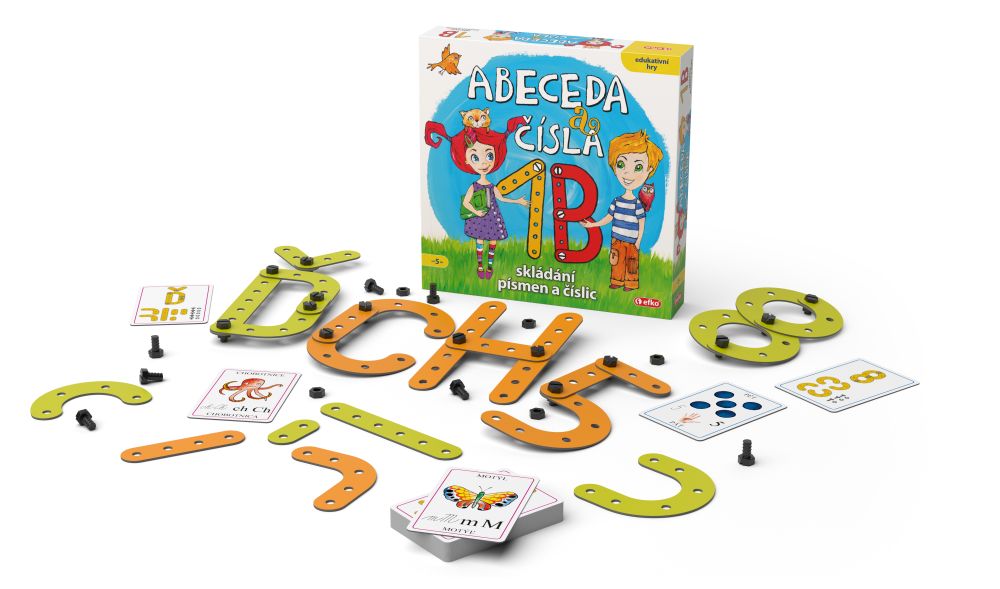 Soubor pěti jednoduchých her slouží pro seznámení dětí s písmeny a číslicemi. Díky fyzickému skládání písmen a čísel si děti vštěpují jejich tvar a lépe si je zapamatují. Soubor je ideální pomůckou jak pro samostatnou, tak i kolektivní hru. Písmenka děti skládají dle předlohy s pomocí pevných laminovaných lepenkových dílů a plastových šroubů, takže zároveň procvičují i jemnou motoriku, koncentraci, logické myšlení a představivost. Hra obsahuje českou i slovenskou variantu