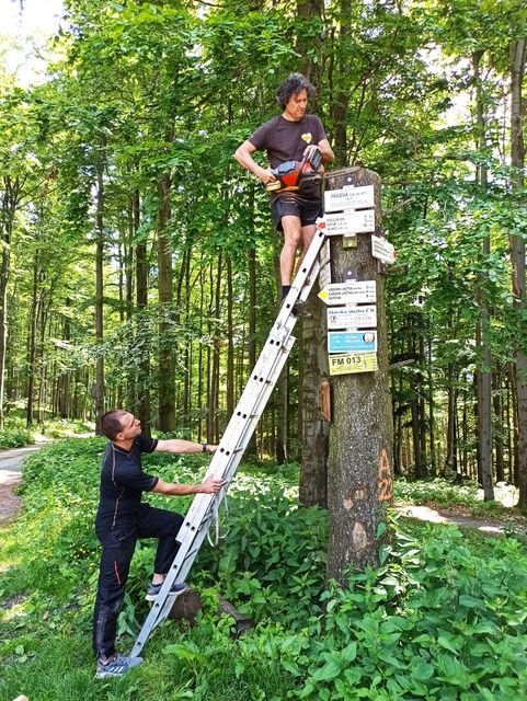 20. dubna chata Prašivá v Beskydech Natírání rozcestníků, informačních