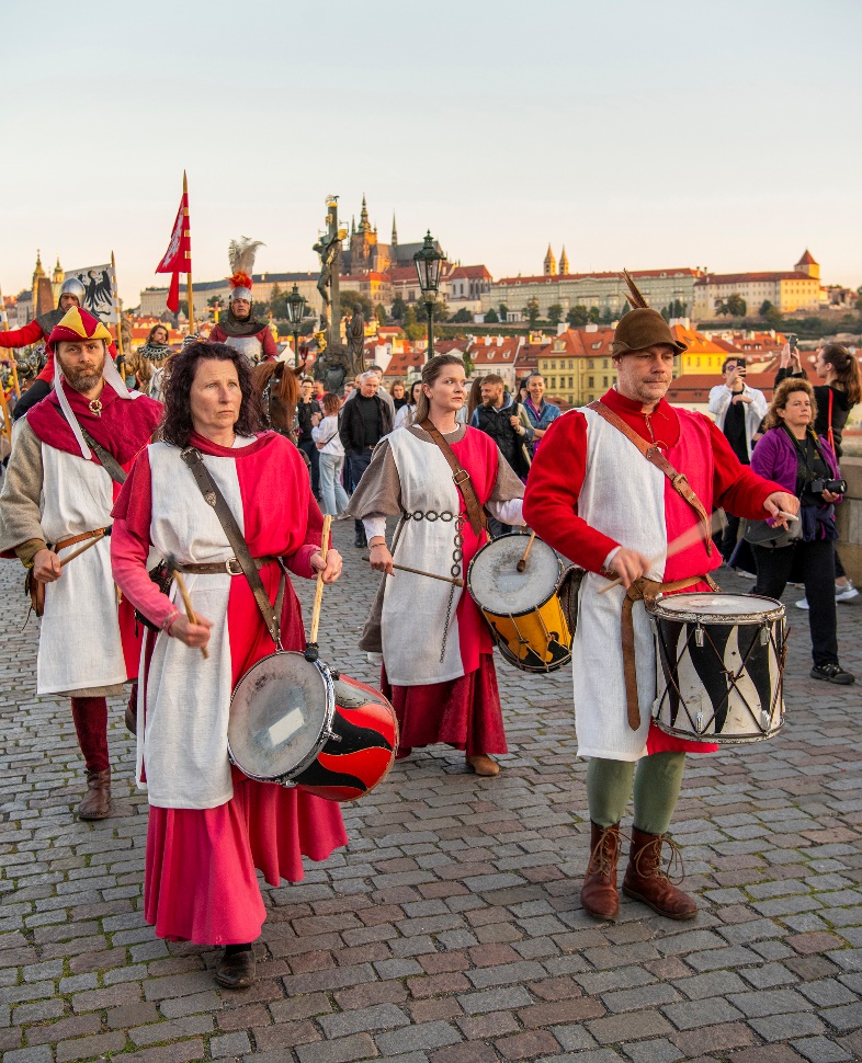Po slavnostní ceremonii na Křižovnickém náměstí před vstupem do Muzea Karlova mostu propukne kulturně historický a osvětový program, tance středověké skupiny Regii Caroli regis pod vedením Jiřího Smahy, středověká hudba skupiny Řemdih a vystoupení královských bubeníků a praporečníků skupiny Fedrfechtýřů.
