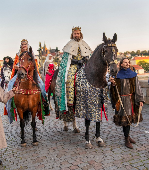 5:00 Průvod Karla IV. od Malostranských mosteckých věží přes Karlův most na Křižovnické náměstí