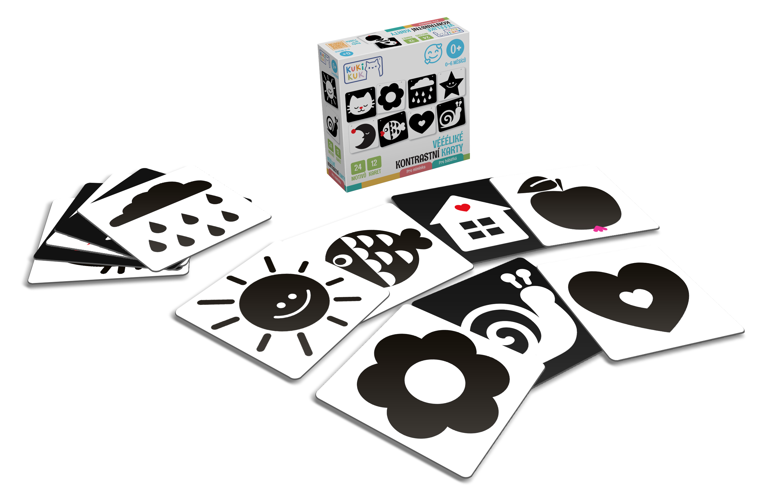 Hledáte-li hezký a zároveň užitečný dárek pro svoje nejmenší, neměly by vaší pozornosti uniknout „Véééliké kontrastní karty pro miminka“ z nové řady her KukiKuk. V balení naleznete 24 obrázků pro přirozený rozvoj zraku a pozornosti nejmenších. Součástí jsou i rady pro rodiče, které jsou vypracované na základě odborných studií. V prvních měsících života lze pomocí těchto karet rozvíjet zrak a paměť. Učí děti fixovat zrak a rozeznávat základní obrysy. Kojencům prostřednictvím velkých speciálně navržených obrázků předává hra první impulsy k vizuálnímu pochopení světa kolem sebe. Velké karty jsou vyrobeny z dostatečně silného odolného kartonu a zabaleny v kompaktní pevné krabici. MOC 349 Kč.