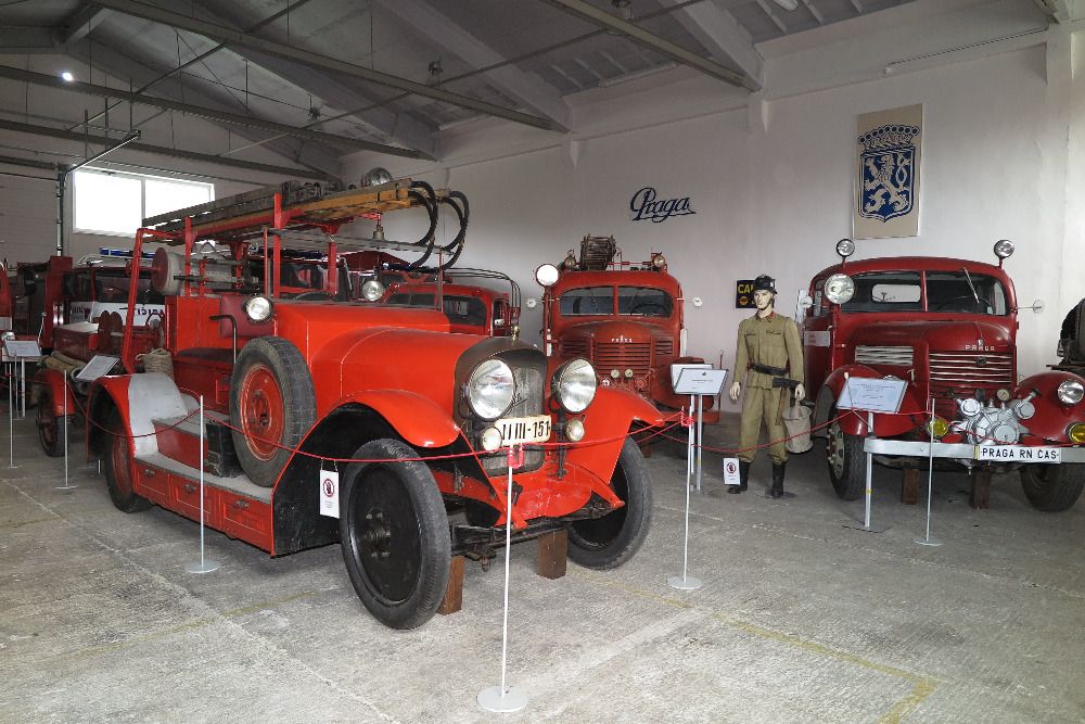 Mezi unikátní exponáty se řadí požární tank SPOT 55, který je určen k likvidaci požárů ve složitých terénních podmínkách. Zájem upoutá červený hasičský žebřík zvaný Máňa, z kultovního filmu Jak dostat tatínka do polepšovny. Jedná se o požární automobil značky Praga Grand Ebert z roku 1920. Hasičské sbory dobrovolníků na území dnešní České republiky začaly vznikat v polovině 19. století. Již v roce 1853 však existoval v Praze profesionální hasičský sbor. Hašení požárů leželo od 2. poloviny 19. století až do druhé světové války na dobrovolných hasičských sborech měst a obcí.