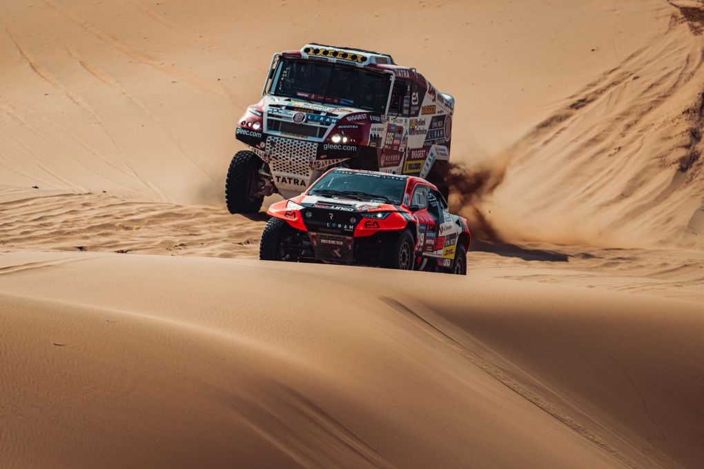 Aliyyah Koloc se naháněla s de Baarem Osmá etapa Rally Dakar přinesla jezdcům výzvu v podobě velmi rozmanitého terénu. Aliyyah Koloc ji ve speciálu RedLined Revo T1+ dokončila v elitní kategorii automobilů Ultimate na 30. místě. V celkovém pořadí závodnice Buggyra ZM Racing i přes technické problémy ze začátku soutěže už poskočila na 29. příčku. Piloti kamionů pod hlavičkou Tatra Buggyra ZM Racing pokračují v soutěži mimo absolutní pořadí, ale stále bojují o etapová pořadí. Pascal de Baar v Tatře Buggyra EVO3 byl dnes sedmý. Jaroslav Valtr v Tatře Phoenix obsadil 22. místo a Daniel Stiblík v druhém Phoenixu byl klasifikován dvě příčky za ním. Aliyyah Koloc si dnešní etapu pochvalovala. Nevadil jí ani dlouhý přesun v její polovině. „První část byla v dunách. Ty rychlé pasáže se mi líbily. Bojovali jsme s maximální rychlostí, takže nás poměrně brzy hodně aut předjelo. Pak jsme ale zase my předjeli několik z nich v dunách. Druhá část byla spíš po kamenech, což mě vůbec nebavilo. 15 kilometrů před koncem jsme měli defekt.