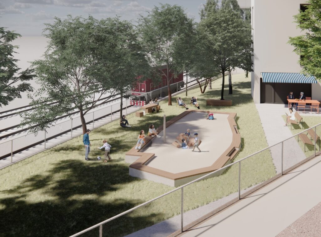 Jedná se o pískoviště s vloženým modelem starého cukrovaru uvnitř s názvem „Industriální archeologie“ architektů Matúše Beráka a Jana Bittnera. „Skrze hru tu děti mohou býti badateli a archeology, kteří objevují minulou podobou cukrovaru“, komentují autoři své dílo.