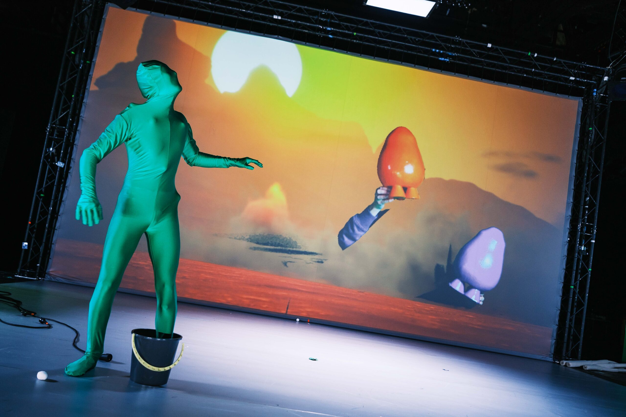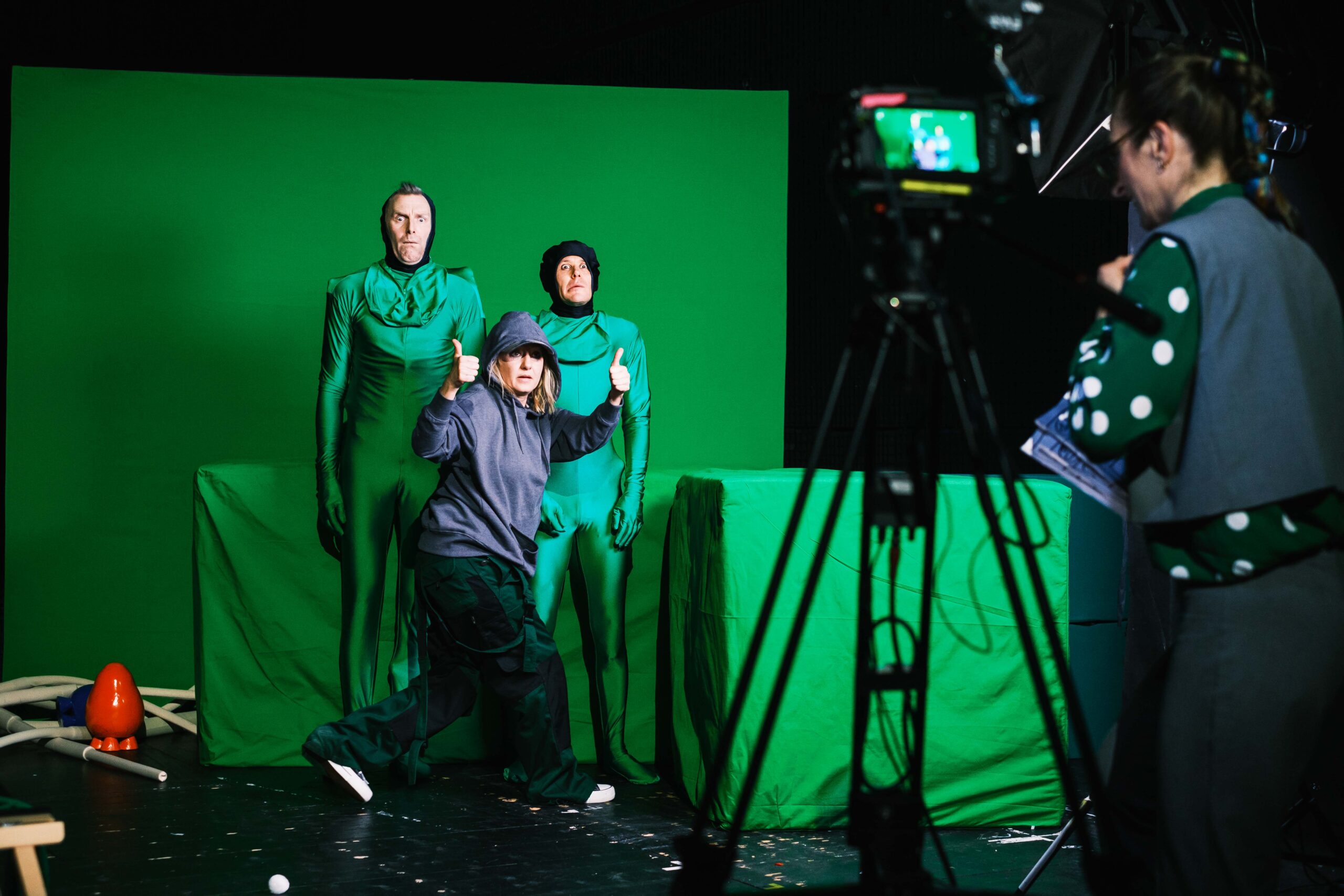 Vanda Hybnerová jako technik-ajťák Max oživila pantomimu Beatboxem(vytváření zvuků pomocí úst bez použití hudebních nástrojů). Beatbox se objevil v osmdesátých letech minulého století. Anna Polívková ztvárnila režisérku Boss. Po představní na besedě s diváky předvedla ukázku chůze na vysokých podpatcích a sklidila zasloužený potlesk. Kreace Radima Vyzváryho a Trygve Wakenshawa byly excelentní. Radim Vyzváry se představil v roli Gorge, roli Pietra vytvořil Trygve Wakenshaw. Radim Vyzváry patří mezi nejvýraznější mezinárodně uznávané osobnosti současného mimického divadla v Evropě. Je držitelem Ceny Thálie 2016 v kategorii Balet, pantomima. Na jubilejním 70. ročníku světového divadelního festivalu v čínském městě Chaj-kchou obdržel v listopadu 2018 výroční medaili ITI . Je nositelem mnoha dalších ocenění u nás, v Evropě nebo USA. Trygve Wakenshaw je respektovaný a oceňovaný umělec. Vyrůstal a studoval na Novém Zélandu. V roce 2008 odešel do zahraničí, na pařížskou Ecole Philippe Gauliere. V současné době žije a tvoří v Praze.