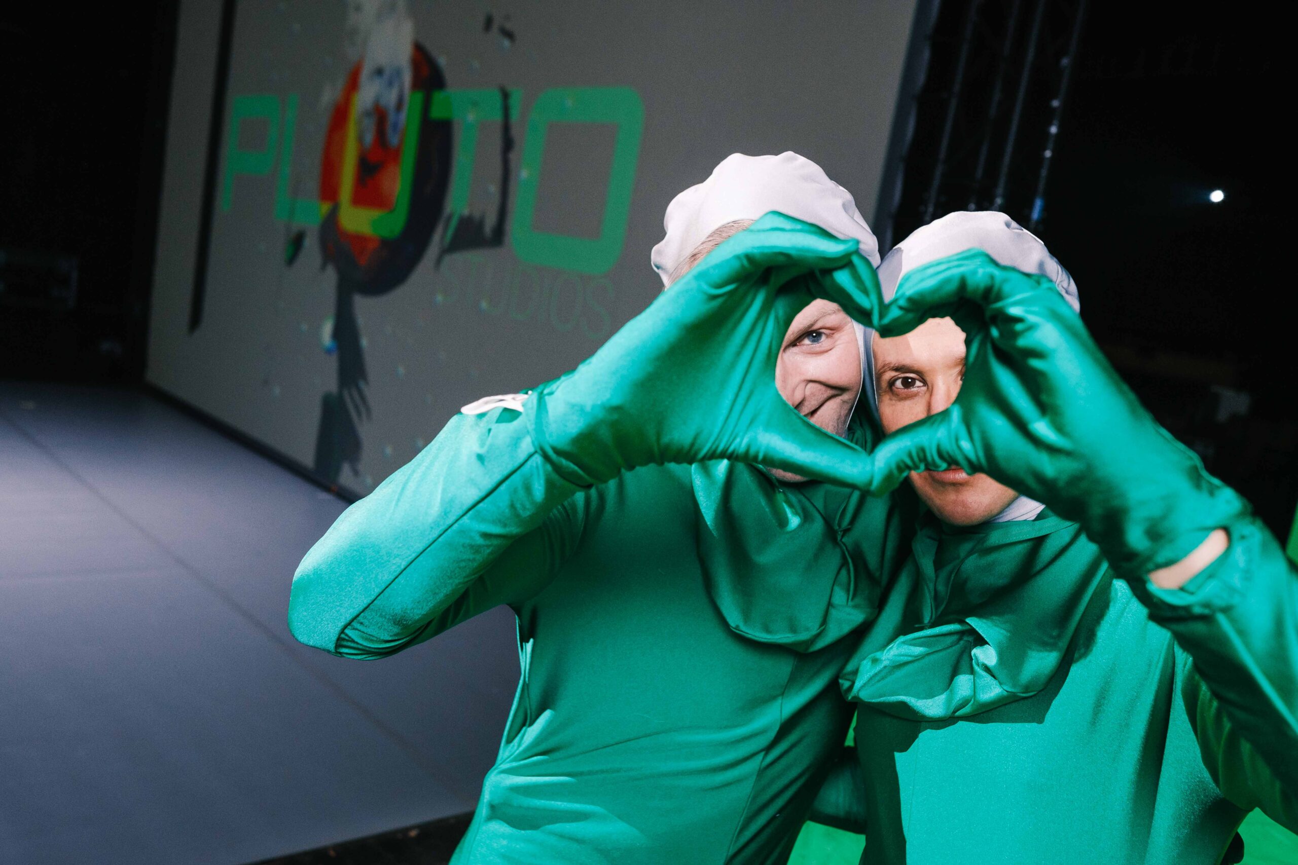 Hlavním výrazovým prostředkem této komedie je pantomima. Klasická umělecká forma, která kdysi zářila jako planeta ve sluneční soustavě, ale postupem času ustoupila do stínu filmových hvězd. Pluto je filmové studio, kde je možné téměř vše a kde jedinou jistotou je chaos. Představte si čtveřici nadšenců, kteří se rozhodnou založit filmové studio motion capture. Zní to jako skvělý nápad? Možná. Je tu jen jeden drobný háček – o filmu nevědí vůbec nic. Vašimi průvodci jsou flegmatický technik Max, režisérka zvaná Boss, která vidí rozmazaně nejen budoucnost, snaživý herec Gorge a jeho líný kolega Pietr. Společně se pokusí vytvořit velké filmové dílo. Nebo alespoň něco, co se nerozpadne dřív, než postaví green screen. Žijeme v době technologií, které postupují tak rychle, že i ti nejzkušenější sotva drží krok. Pluto s humorem zkoumá kontrast mezi dokonalou technickou přesností a lidskou chybovostí. Kolik kontroly nad světem vlastně máme – a kolik jí vůbec potřebujeme? Hrdinové Pluta mají jen zelené overaly, fůru kabelů a víru, že nadšení je tím hlavním, co nás dovede k cíli. A kdo ví, možná i do vesmíru…