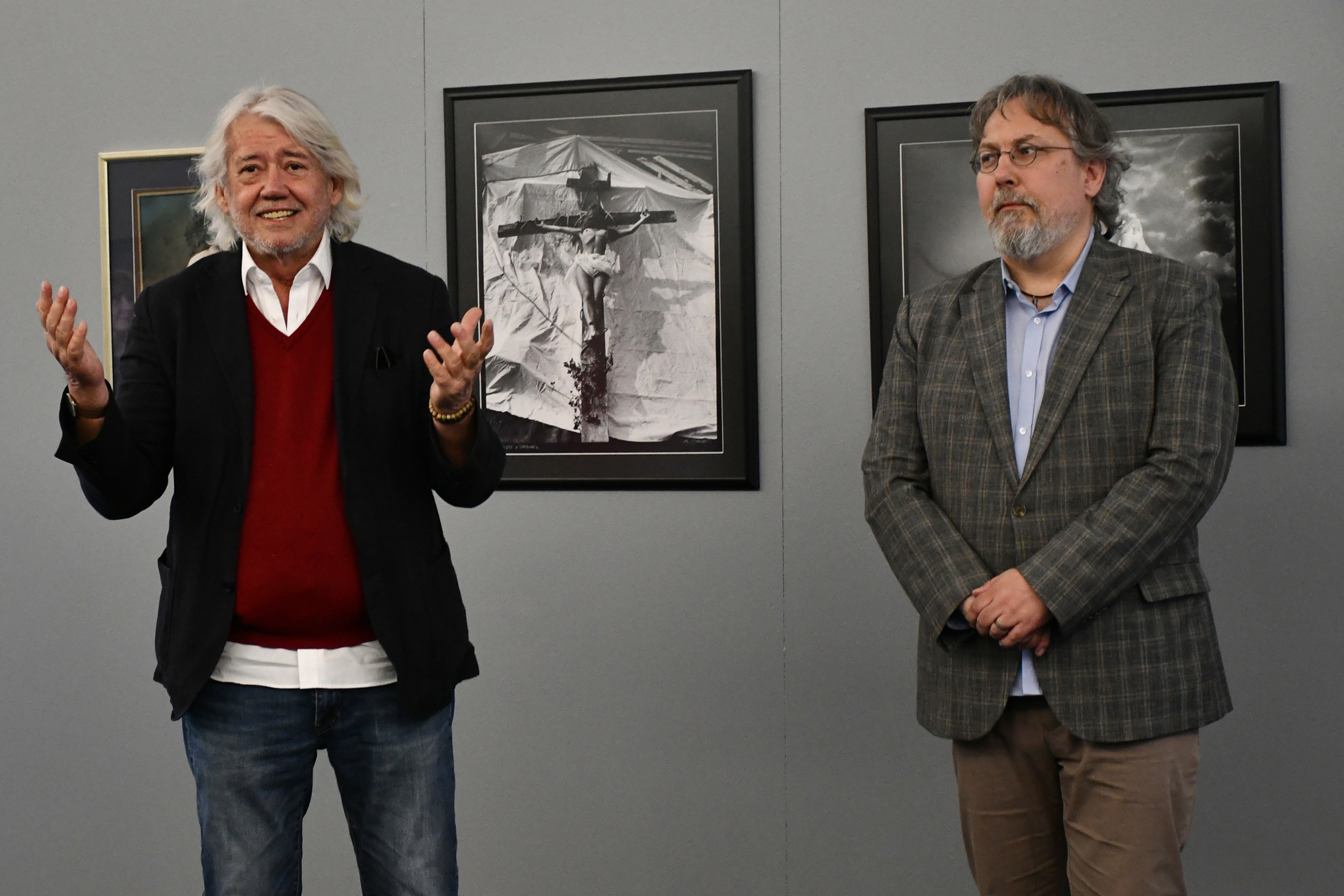Vernisáž zahájili ředitel Západočeského muzea v Plzni Jiří Orna (vpravo) a spoluautor výstavy, jeden z nejznámějších českých galeristů, sběratel umění, majitel několika galerií, vystudovaný fotograf a plzeňský rodák, Zdeněk Kočík.