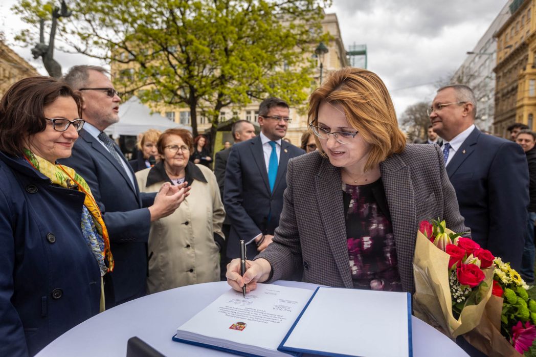 Slavnostního aktu, který proběhl ve čtvrtek 4. dubna 2024, se zúčastnili předseda Senátu Parlamentu České republiky Miloš Vystrčil, předseda horní komory Senátu Rumunska Nicolae Ionel Ciucă, velvyslankyně Rumunska v České republice J. E. Marie Antoaneta Barta, velvyslankyně České republiky v Rumunsku J. E. Halka Kaiserová, předseda rady regionu Iaşi Costel Alexe, starosta městské části Praha 2 Jan Korseska a další hosté. Nechyběli ani zástupci Česko-rumunské společnosti, Rumunské asociace nebo Univerzity Karlovy v Praze.