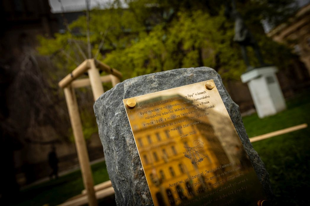 Praha (5. dubna 2024) Odnož vzácné „Eminescovy lípy“ na náměstí Míru v Praze 2 bude připomínat památku jednoho z nejvýznamnějších rumunských národních básníků MIHAIE EMINESCA. Součástí včerejší slavnosti, kterou iniciovalo Velvyslanectví Rumunska v Praze, bylo i odhalení kamene s deskou. Ta bude tuto událost navždy připomínat.